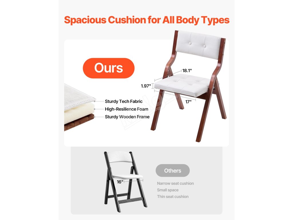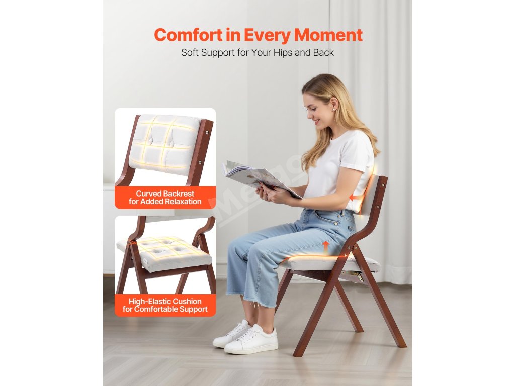 Naše drevené skladacie stoličky unesú až 400 libier / 180 kg a sú vybavené veľkými sedacími vankúšmi pre väčšie pohodlie. Vďaka jednoduchej skladacej konštrukcii sú pohodlné na skladovanie a prenášanie.