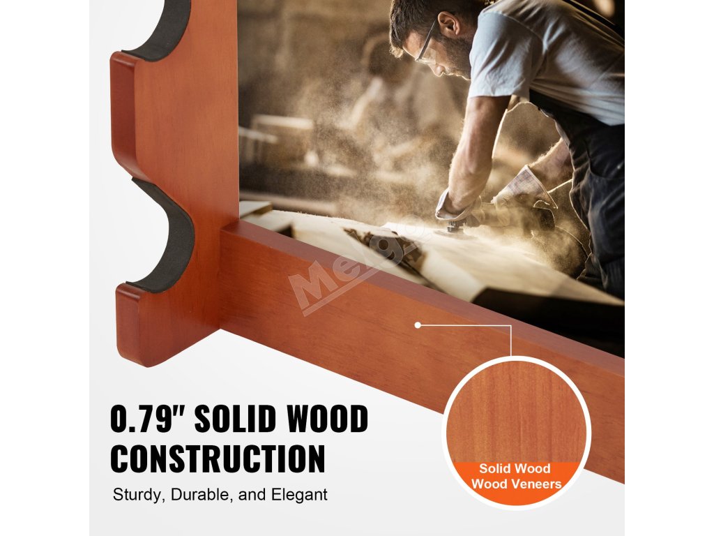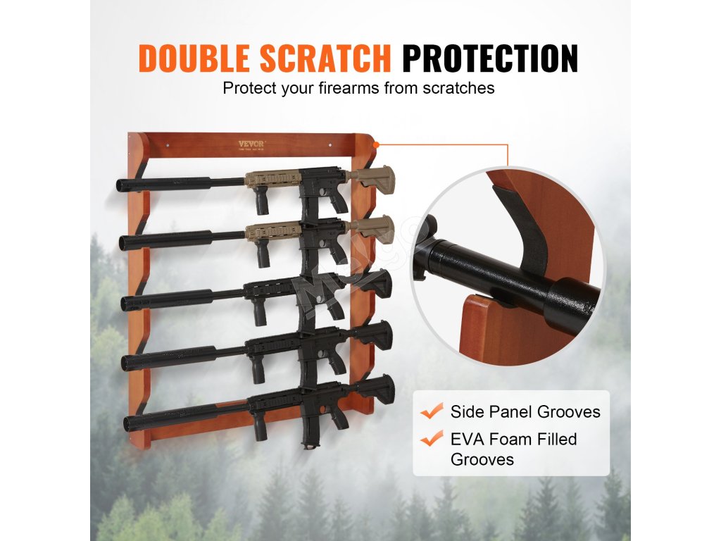 Drevený stojan na zbrane je špeciálne navrhnutý s mäkkým polstrovaním, ktoré zabezpečuje šetrnú starostlivosť o vaše strelné zbrane a zabraňuje ich poškriabaniu a poškodeniu. Drážky bočného panelu sú vyplnené mäkkou penou EVA, ktorá poskytuje vynikajúcu ochranu a bezpečné umiestnenie pre vaše strelné zbrane.