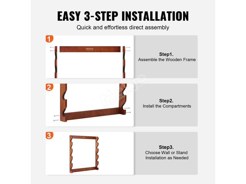 Náš premyslene navrhnutý stojan na zbrane má pevnú a odolnú štruktúru vzájomne prepojených panelov, ktorá vám poskytuje jednoduché riešenie inštalácie. Okrem toho sme pripravili všetok potrebný hardvér, nemusíte kupovať ďalšie dodatočné príslušenstvo. Inštalácia nášho stojana na zbrane nikdy nebola jednoduchšia!