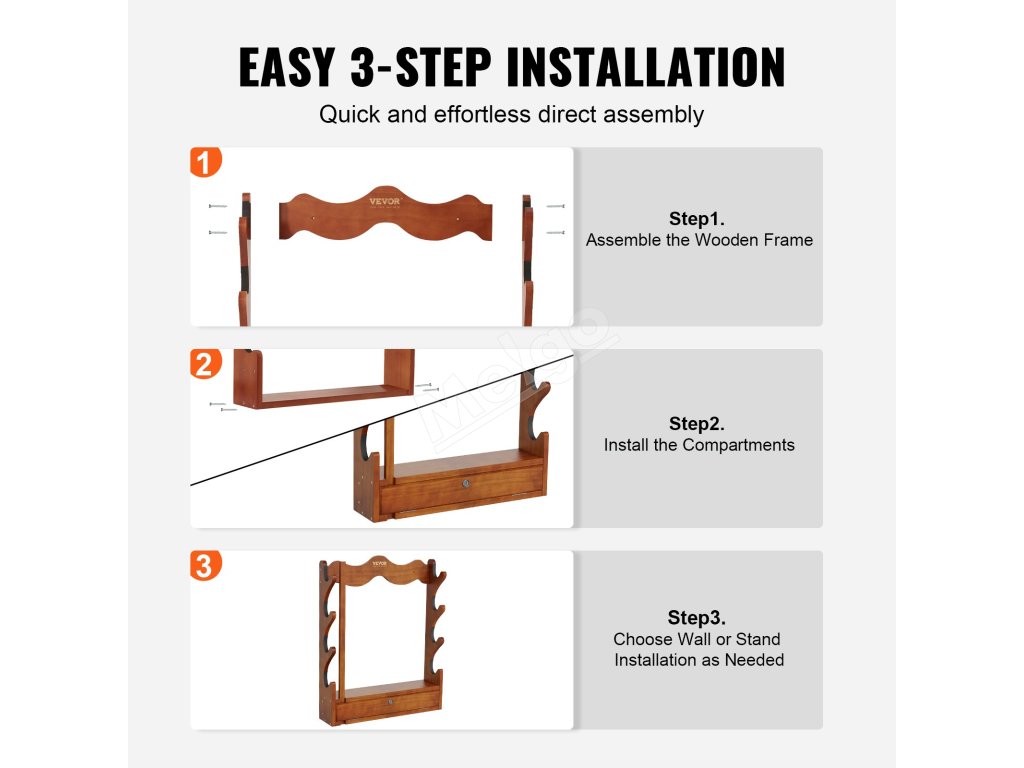 Náš premyslene navrhnutý stojan na zbrane má pevnú a odolnú štruktúru vzájomne prepojených panelov, ktorá vám poskytuje jednoduché riešenie inštalácie. Okrem toho sme pripravili všetok potrebný hardvér, nemusíte kupovať ďalšie dodatočné príslušenstvo. Inštalácia nášho stojana na zbrane nikdy nebola jednoduchšia!