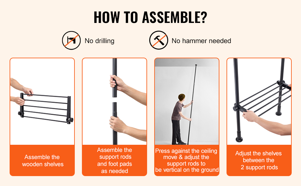 Vybrané hrubé nosné rúrky z nízkouhlíkovej ocele sú navrhnuté s tesnými spojmi v spojoch rúrok a podložkách pod nohy, čo zabezpečuje vyplnenie vzdialenosti od podlahy k stropu, zachováva stabilitu a zabraňuje viklaniu alebo deformácii pri dlhodobom používaní.