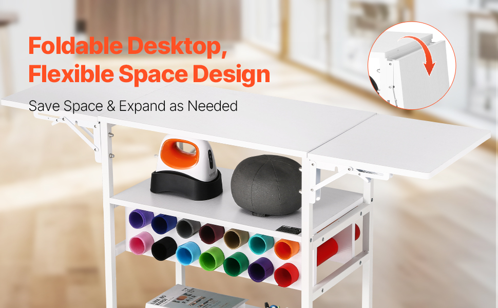Keď potrebujete veľkú rovnú plochu na remeselné práce, jednoducho rozložte tento organizačný a úložný remeselný stôl na celú jeho veľkosť, aby ste získali dostatok pracovnej plochy. Keď skončíte alebo máte málo miesta, môžete ho ľahko zložiť späť do kompaktnej podoby, čo uľahčuje jeho skladovanie.