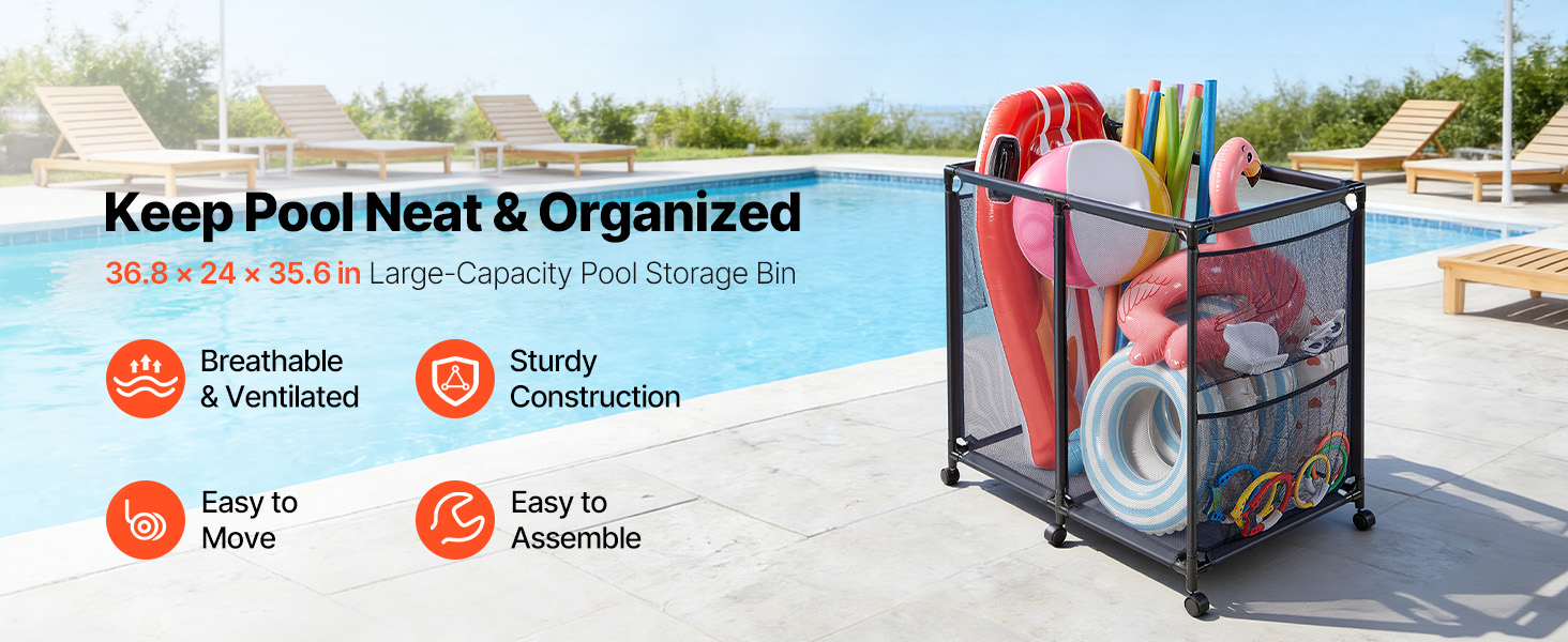 Tento úložný kôš na bazénové hračky pojme všetky druhy bazénového vybavenia. Rozšírené bočné vrecko je ideálne na malé predmety, ako sú okuliare a plavecké čiapky, a pomáha udržiavať bazénový priestor čistý a uprataný.