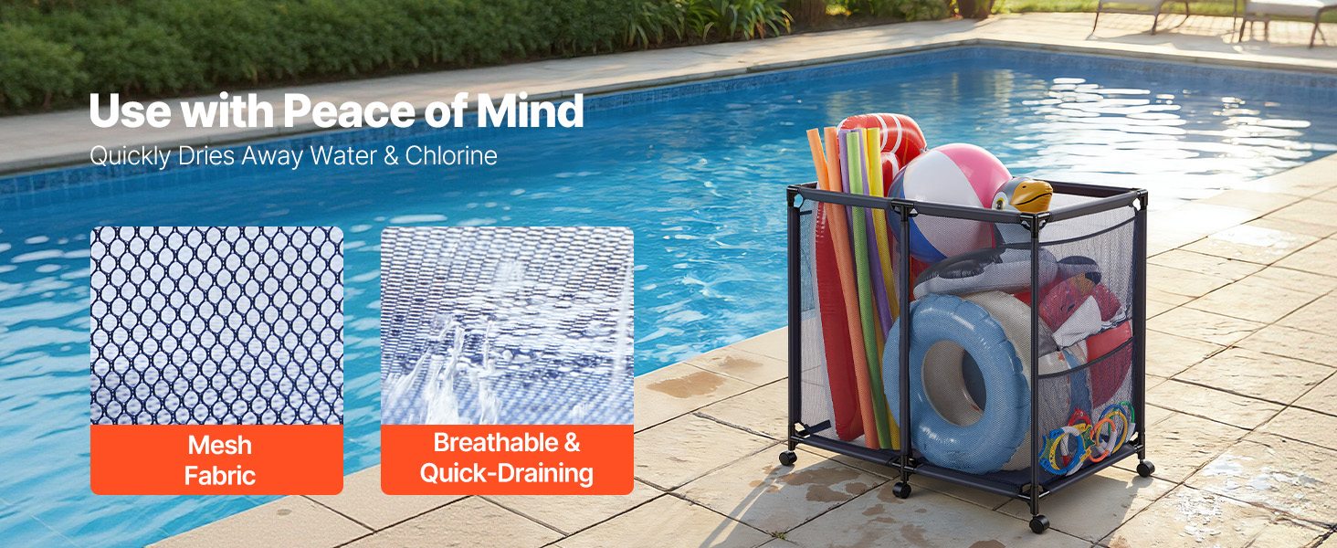 Náš úložný kôš na plávacie pomôcky má po všetkých stranách sieťované panely, ktoré pomáhajú rýchlo odvádzať vodu a zlepšujú prúdenie vzduchu, čím sa predmety rýchlejšie sušia.
