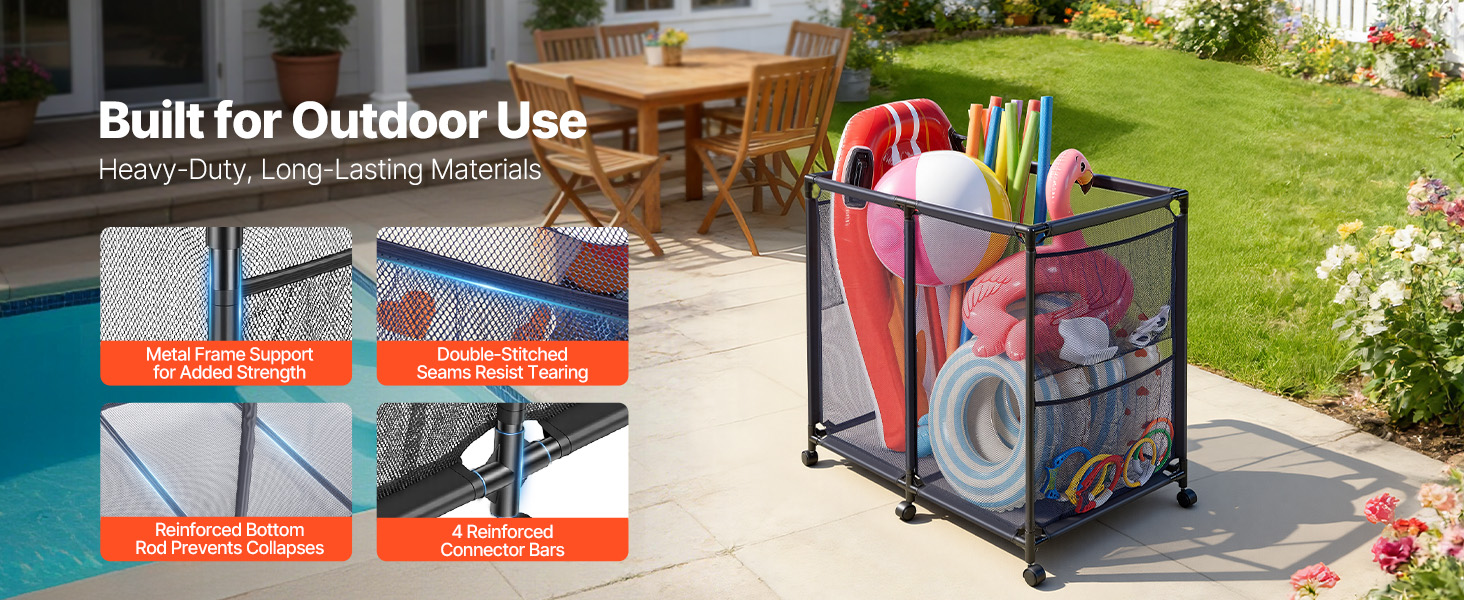 Náš organizér na plávacie pomôcky je ideálny pre bazény a terasy v záhrade a funguje aj ako úložný box pre sklady, kúpeľne alebo organizáciu interiéru.