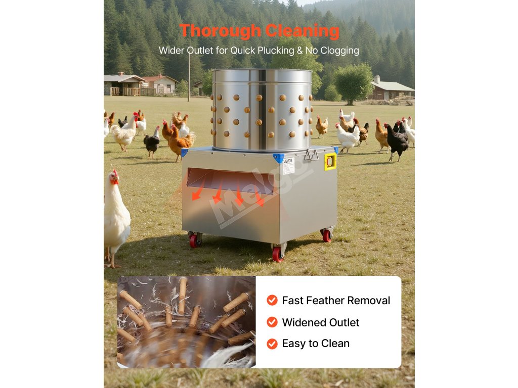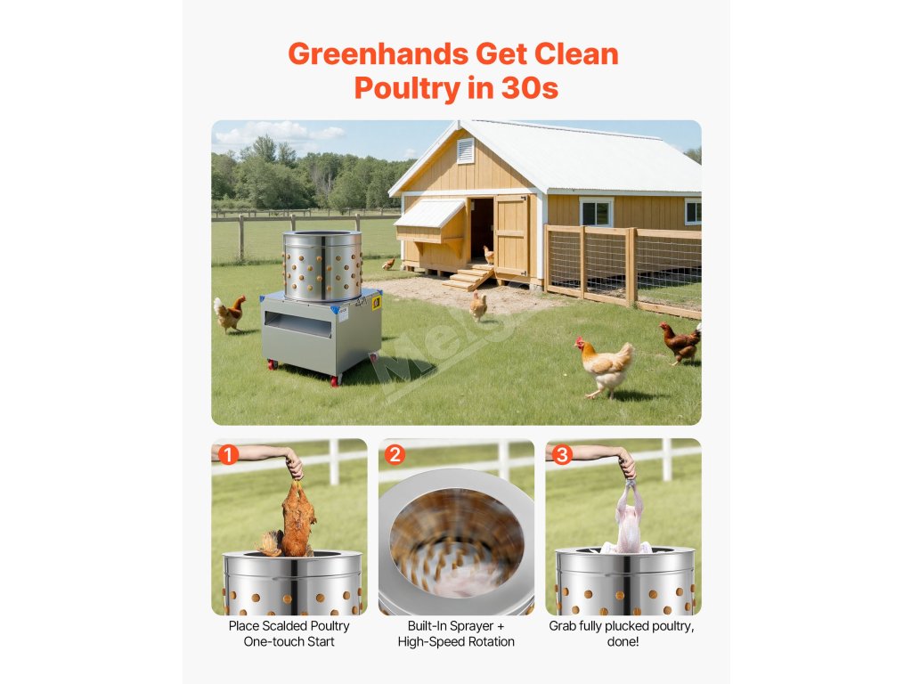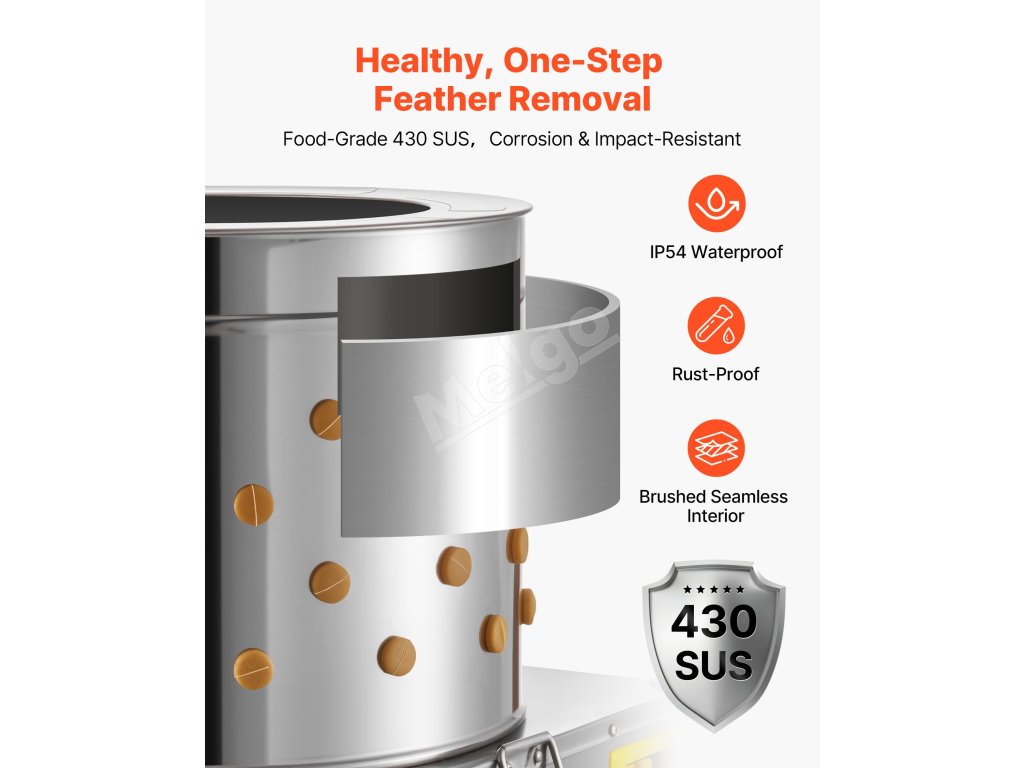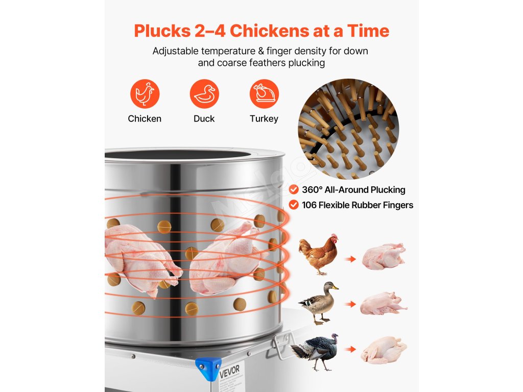 Elektrická šklbačka na kurčatá je vyrobená z nehrdzavejúcej ocele s mäkkými gumenými prstami a je ideálna na šklbanie peria zo stredne veľkej a veľkej hydiny. Poradí si s kačkami, kurčatami, husami a moriakmi bez poškodenia kože, čo z neho robí dokonalé univerzálne riešenie na spracovanie hydiny na dvore.