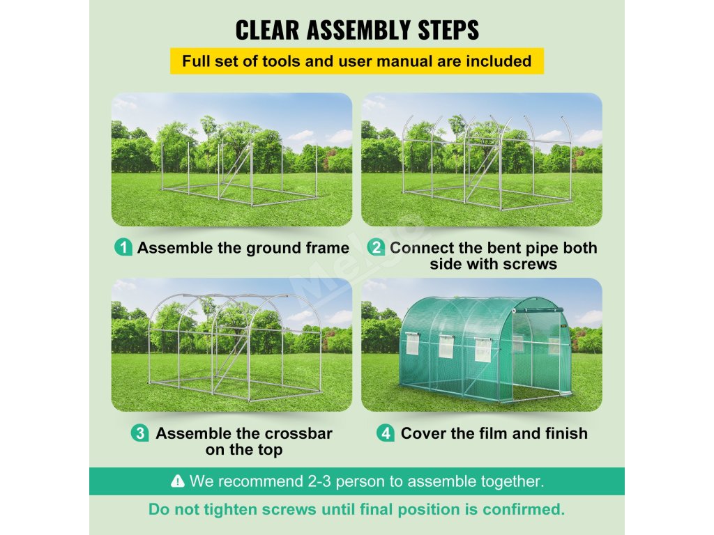 Inštalácia našej súpravy obručového skleníka je bezproblémová vďaka nášmu prehľadnému a ľahko čitateľnému návodu na použitie. Stačí nájsť správne diely a skombinovať ich, potom bude proces inštalácie dokončený.