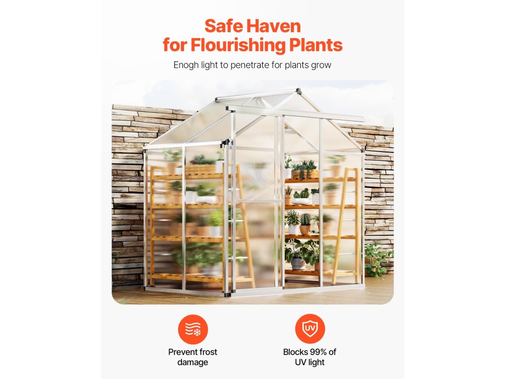 VEVOR Vonkajší polykarbonátový skleník 6 x 4 Ft