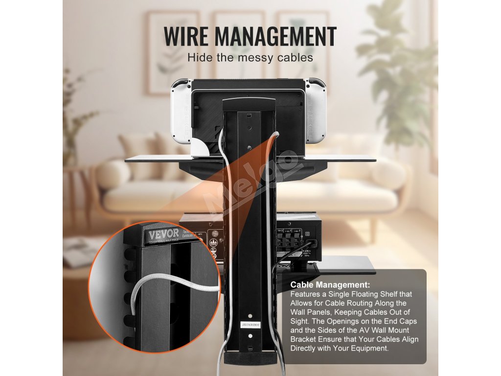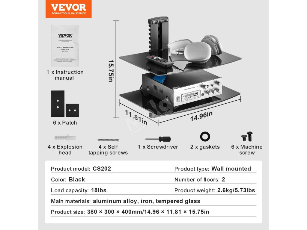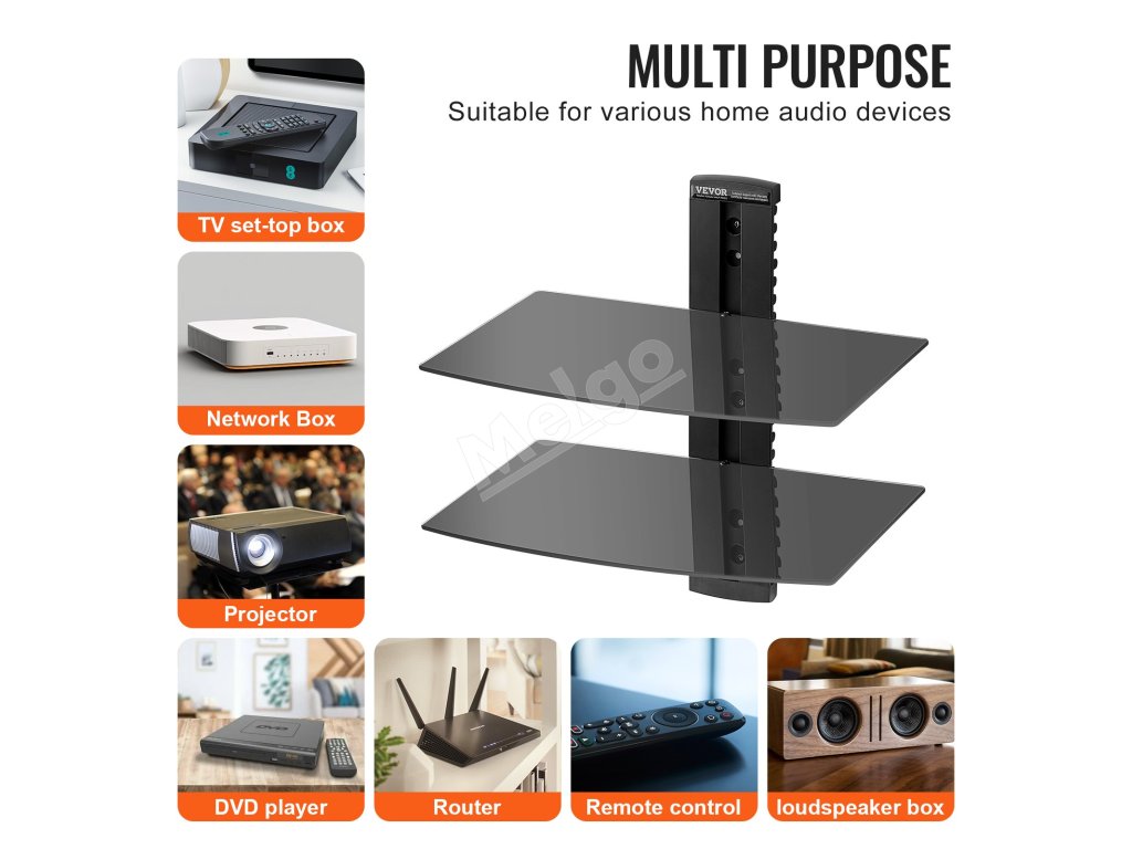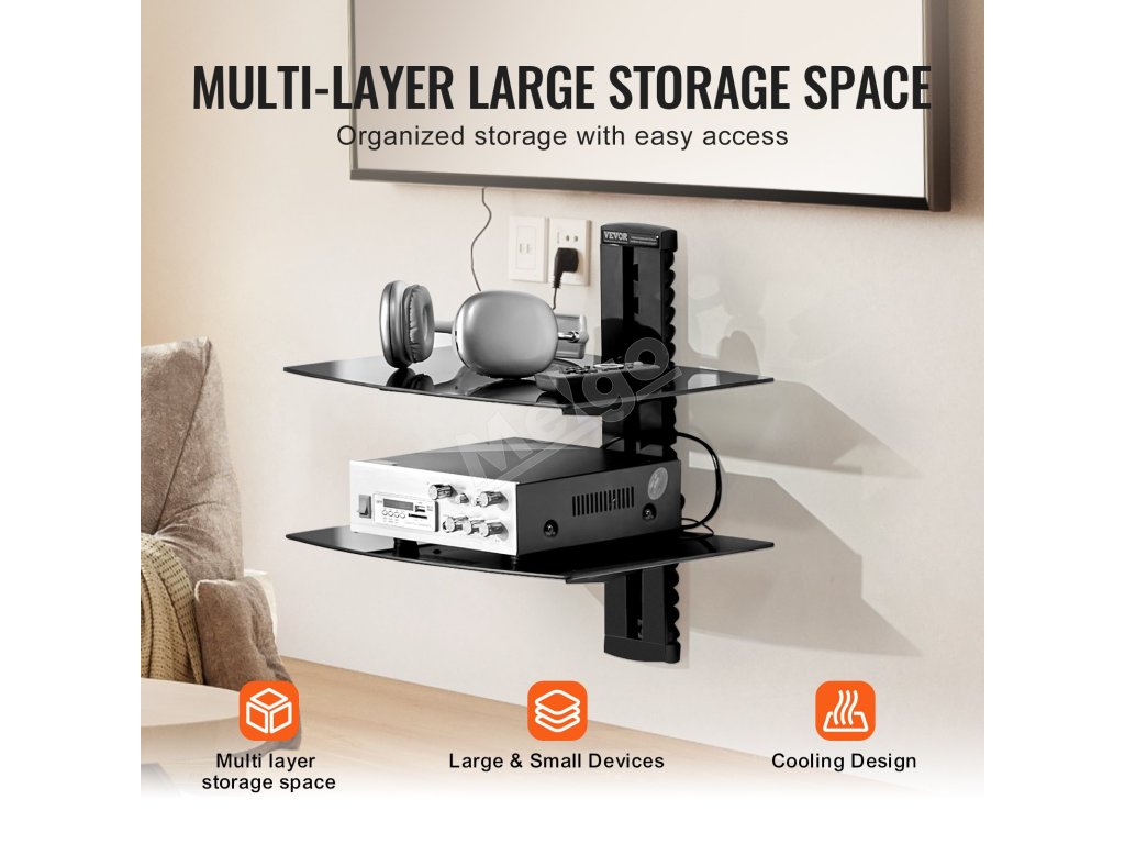 VEVOR 2-úrovňový nástenný stojan na AV médiá - uvoľní vám miesto na stole!