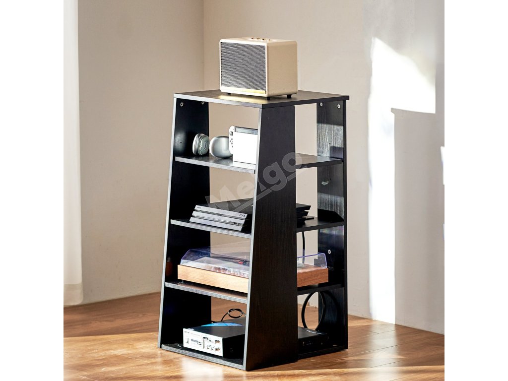 Stojan na av médiá 5-poličový, drevený, výškovo nastaviteľný, čierny