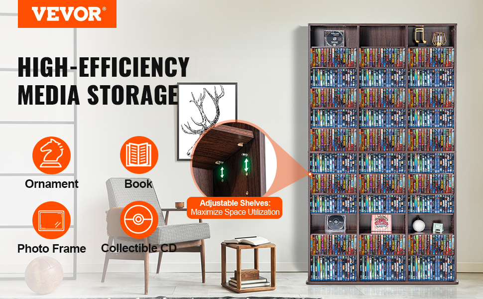 Všestranná a kreatívna skrinka na DVD a CD, ktorá maximalizuje úložnú kapacitu vďaka nastaviteľnej polici. Bez námahy pojme vaše cenné DVD a CD, knihy, drobné dekorácie, fotografie a zberateľské predmety a udrží vaše veci prehľadne usporiadané.