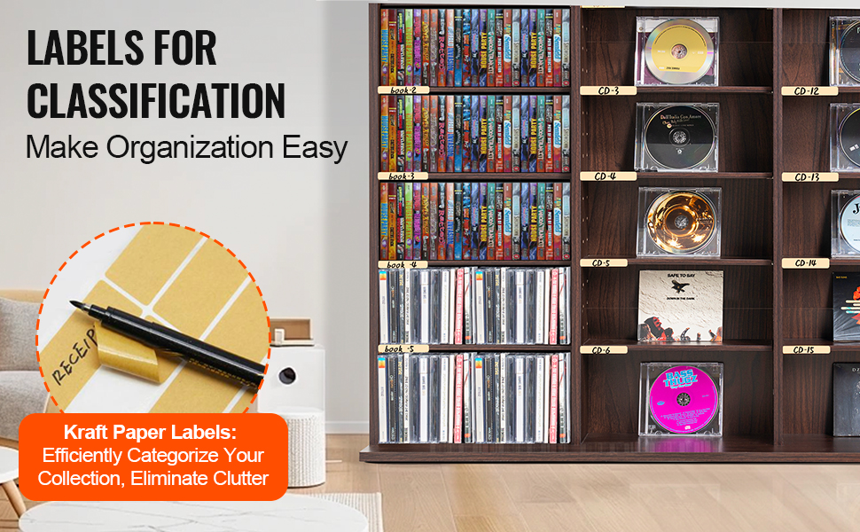 Dodáva sa s kraftovými klasifikačnými štítkami, ktoré uľahčujú identifikáciu a vyhľadávanie diskov DVD a šetria váš čas pri prehľadávaní neprehľadných položiek.