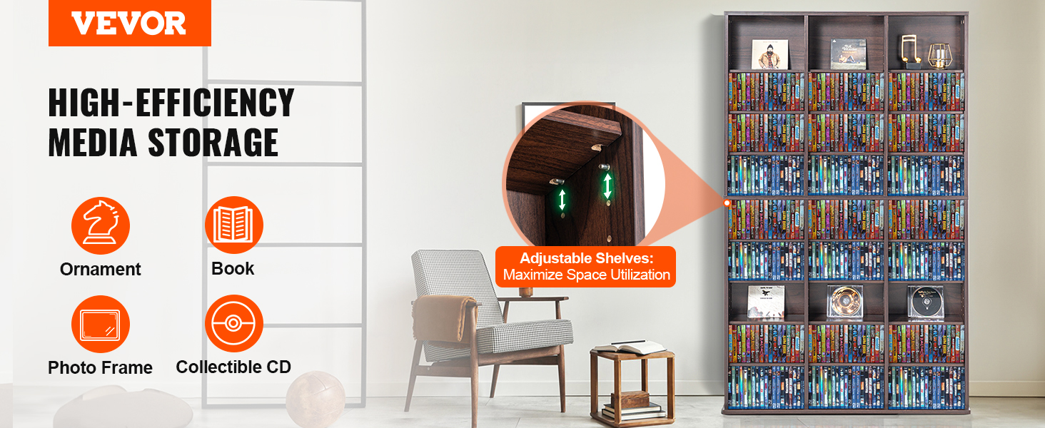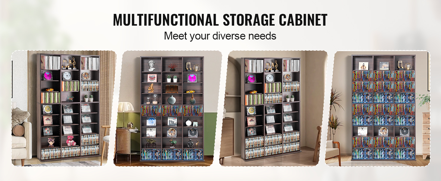 Všestranná a kreatívna skrinka na DVD a CD, ktorá maximalizuje úložnú kapacitu vďaka nastaviteľnej polici. Bez námahy pojme vaše cenné DVD a CD, knihy, drobné dekorácie, fotografie a zberateľské predmety a udrží vaše veci prehľadne usporiadané.