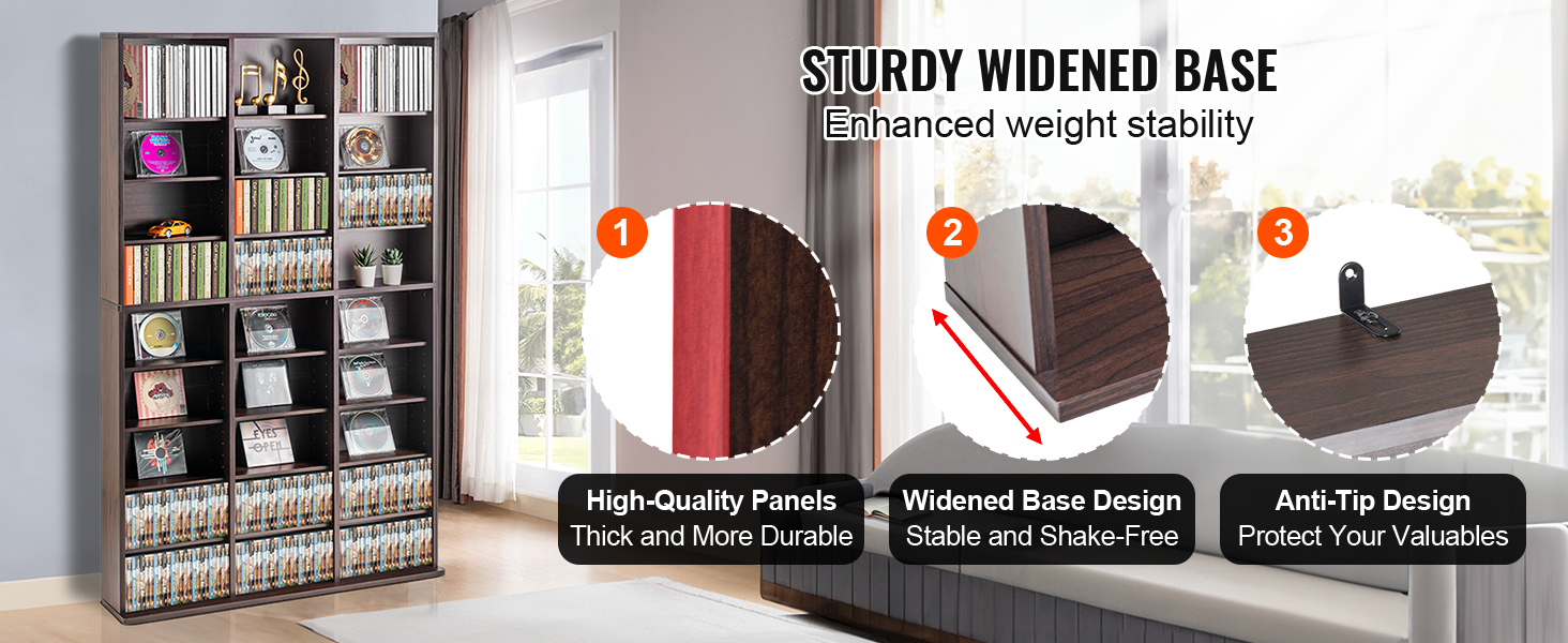 Skriňa na ukladanie CD je vylepšená rozšírenou základňou pre vynikajúcu stabilitu. Vystavujte svoje cenné zbierky s pokojom v duši.