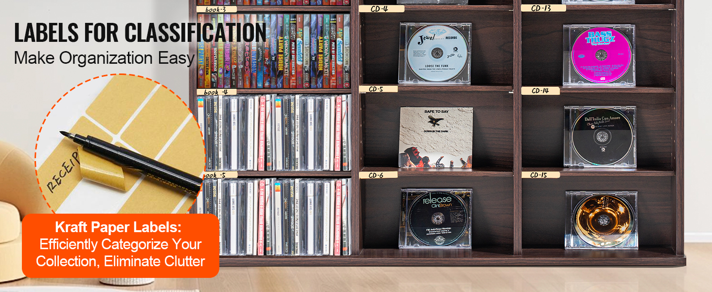 Dodáva sa s kraftovými klasifikačnými štítkami, ktoré uľahčujú identifikáciu a vyhľadávanie diskov DVD a šetria váš čas pri prehľadávaní neprehľadných položiek.