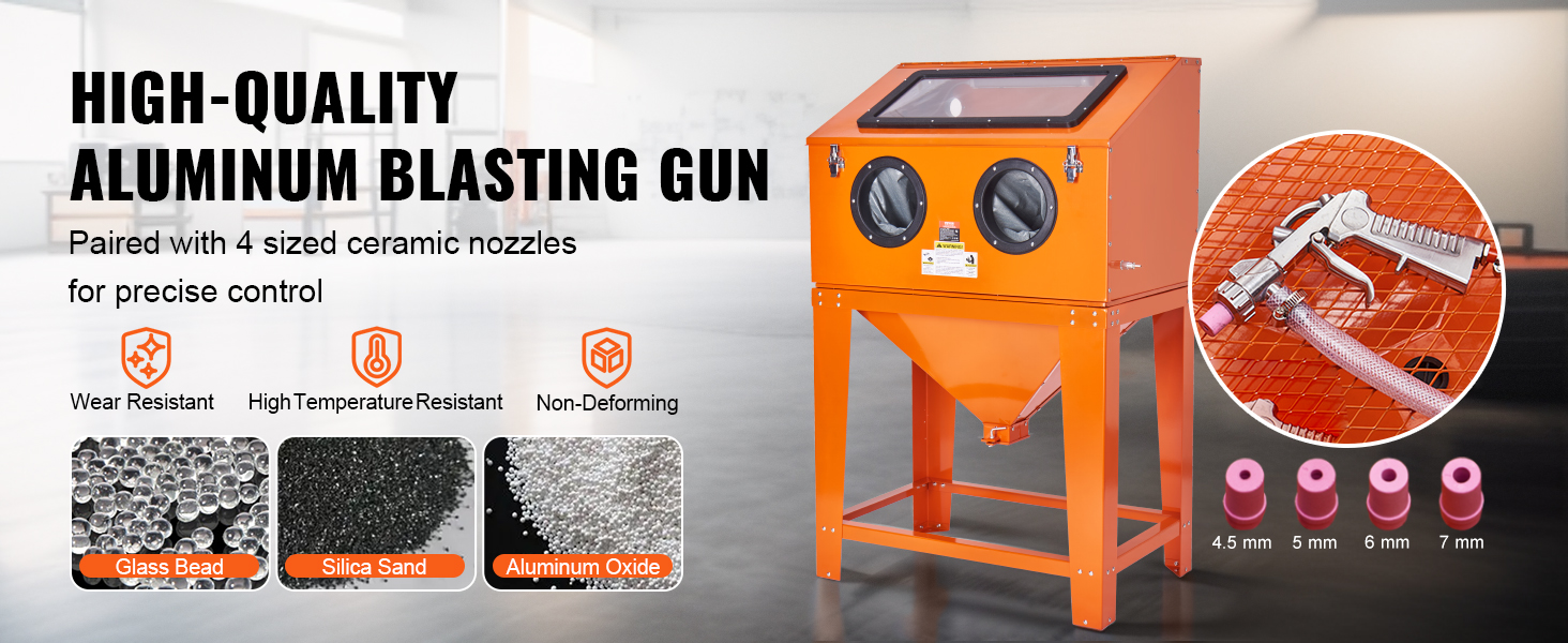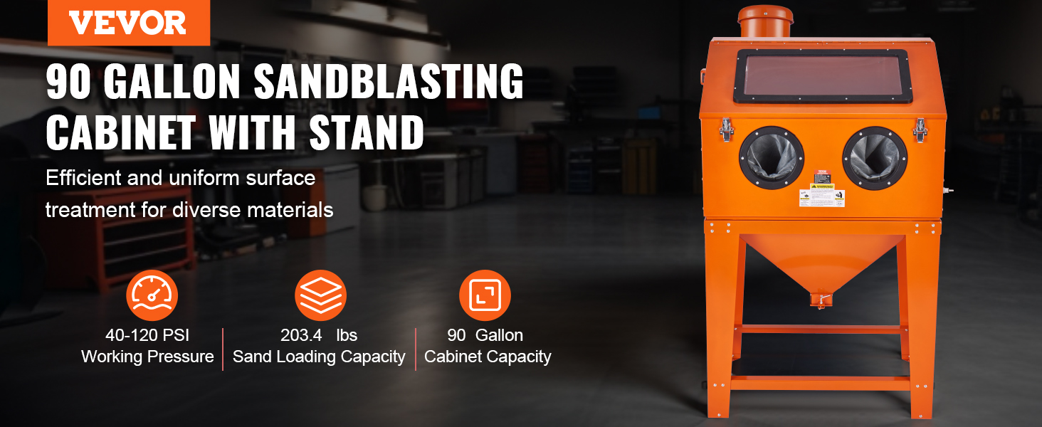 Zažite efektivitu s pieskovacou skriňou VEVOR so stojanom, ktorá ponúka priestrannú kapacitu 90 galónov a poskytuje dostatok priestoru pre rôzne pieskovacie médiá. V kombinácii so zberačom prachu s kapacitou 1,8 galóna poskytuje efektívne riešenie na filtrovanie prachu počas pieskovania.