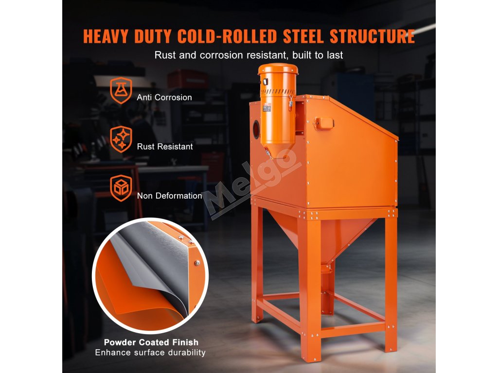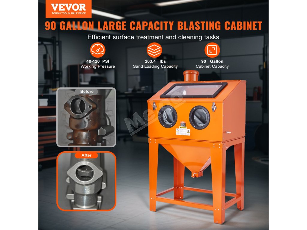 Zažite efektivitu s pieskovacou skriňou VEVOR so stojanom, ktorá ponúka priestrannú kapacitu 90 galónov a poskytuje dostatok priestoru pre rôzne pieskovacie médiá. V kombinácii so zberačom prachu s kapacitou 1,8 galóna poskytuje efektívne riešenie na filtrovanie prachu počas pieskovania.