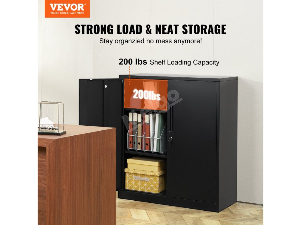 Oceľová skrinka zamykateľná, 2 dvierka, 4 police, 200 lbs/pol, 42''
