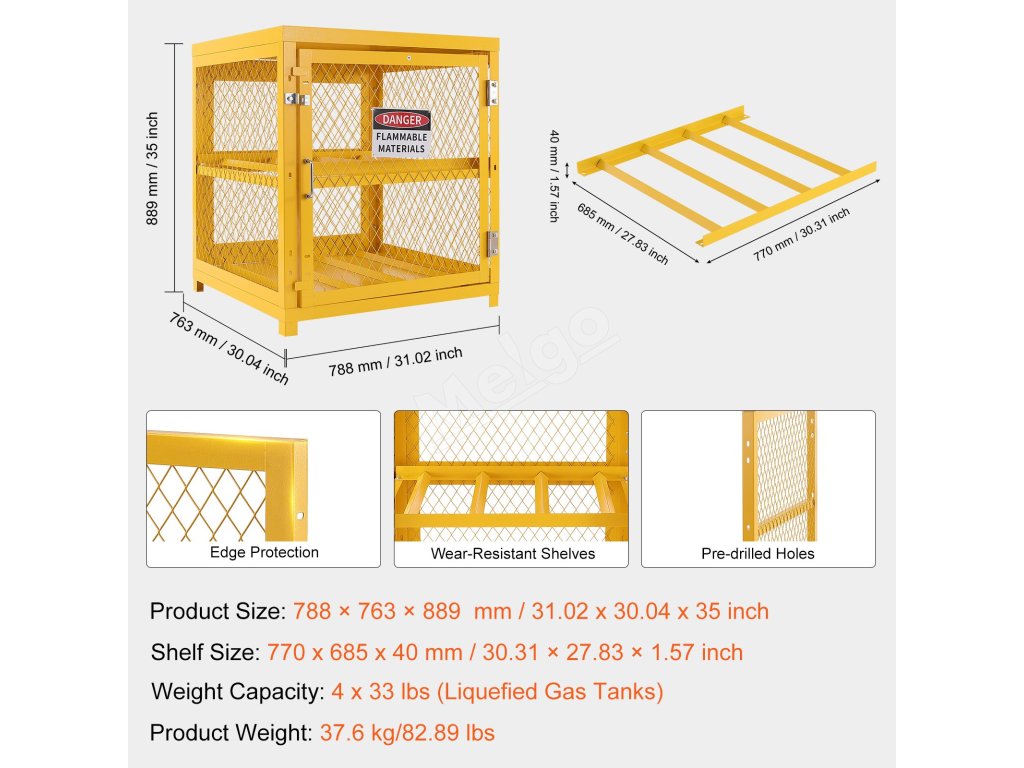 Optimalizované detaily, ako sú horné a dolné poschodia a police a ochranné lišty, zabraňujú skĺznutiu nádrže počas prepravy. Vyberte si našu klietku na propán pre bezpečnosť a pohodlie!