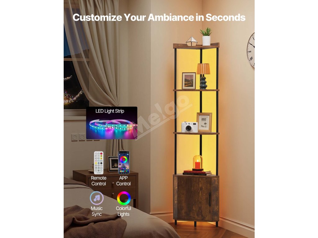 Táto rohová polica kombinuje personalizované osvetlenie s funkčným úložným regálom, čím naplno využíva rohové priestory a zároveň poskytuje jedinečnú svetelnú atmosféru pre dekoráciu domácnosti a nočné osvetlenie. Je ideálna na umiestnenie do rohov obývacích izieb, jedální, herní alebo akýchkoľvek iných miestností, čím dodá vášmu domovu osobitý šarm.