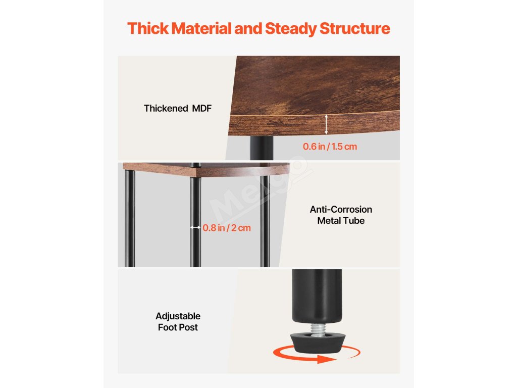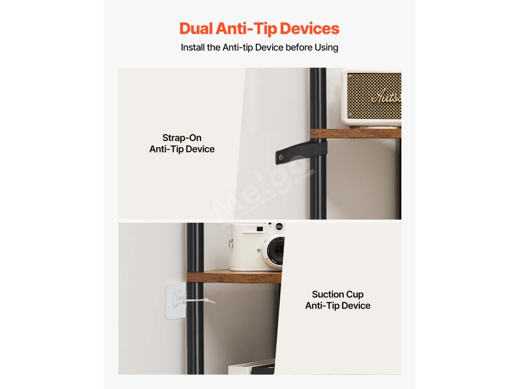| Farba | Čierny kovový rám + hnedé drevené police |