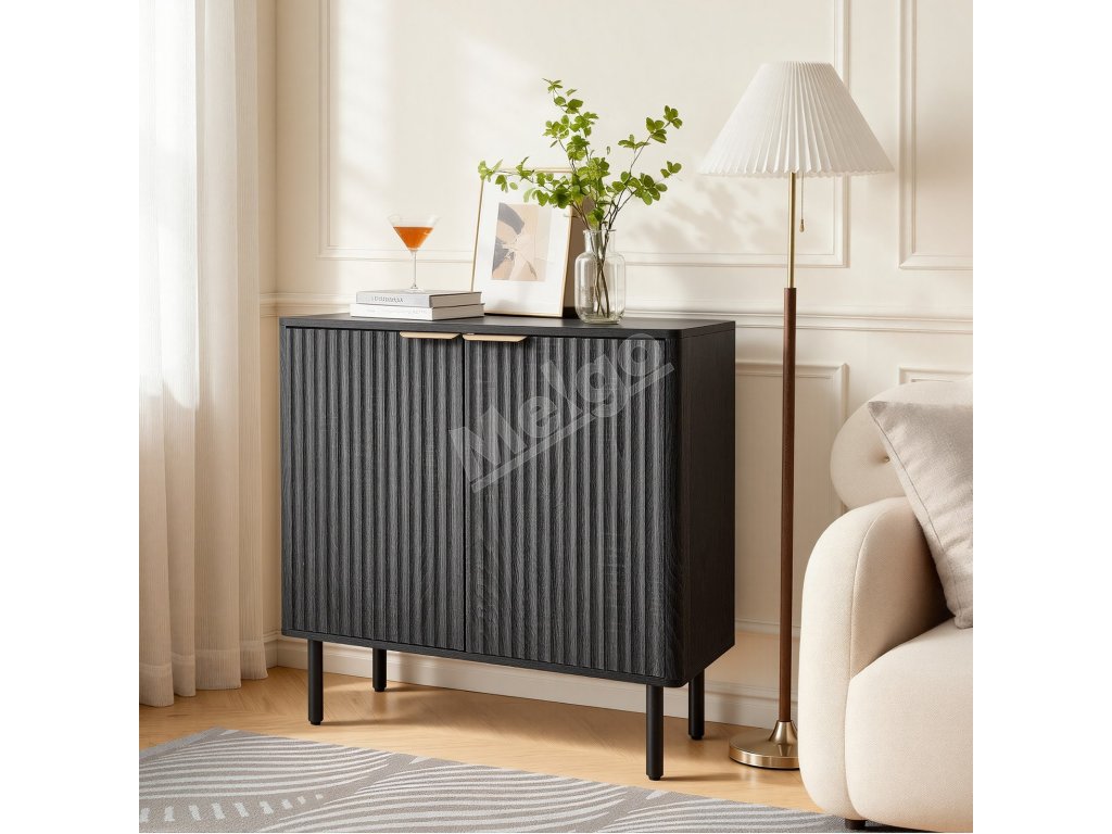 Barový kabinet 2-poschodový s posuvnými dverami, 80×37.5×80 cm, čierny