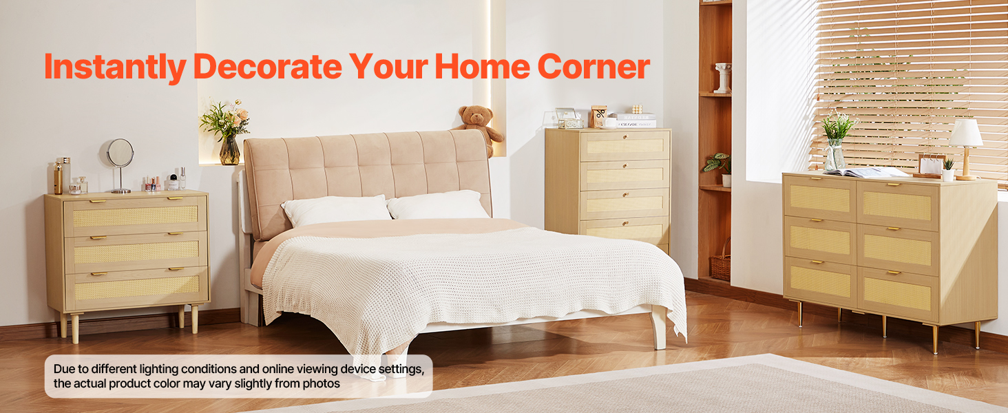 Táto prútená komoda do spálne vám poskytuje skvelé riešenie úložného priestoru. Možno ju použiť ako televíznu skrinku, úložnú skrinku, vchodovú skrinku atď. a je vhodná na rôzne príležitosti. Je to úložná skrinka aj dekoratívna skrinka.