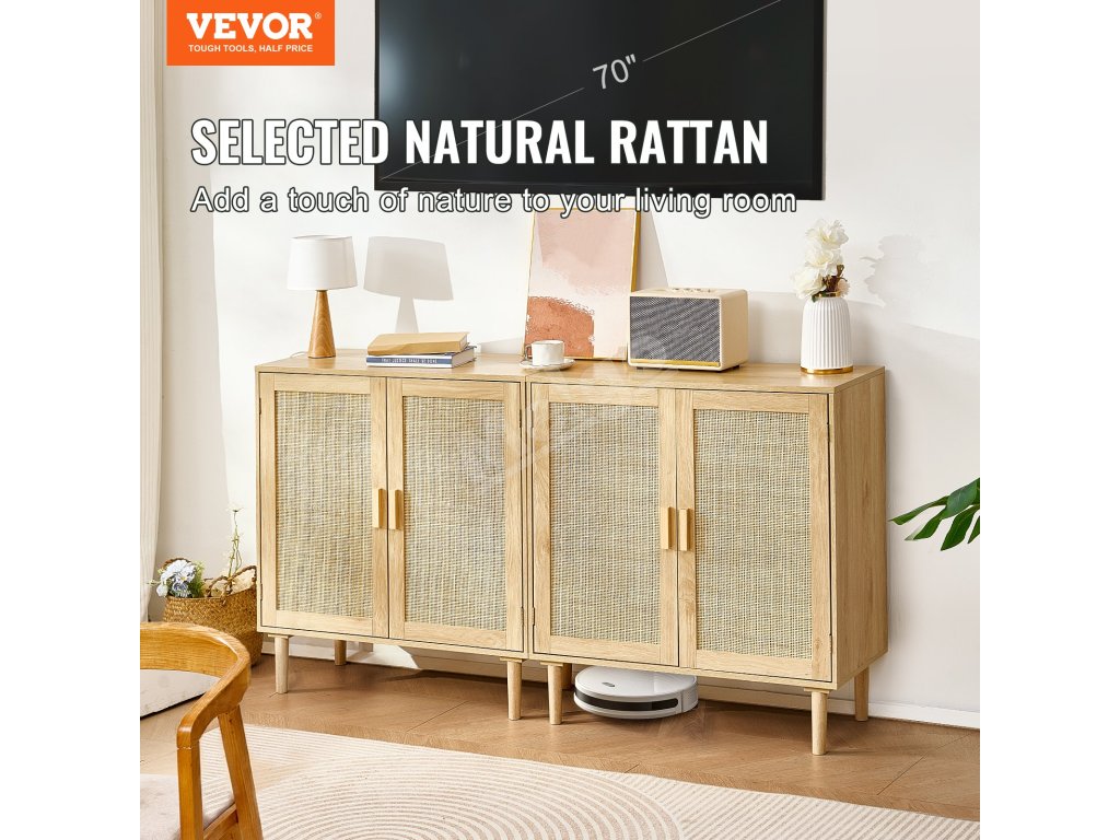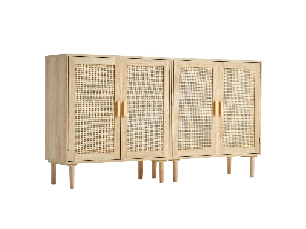 Táto ratanová bufetová skrinka ponúka dokonalé úložné riešenie, vhodné na použitie ako kuchynský príborník, barová skrinka, úložná jednotka alebo skrinka na topánky v predsieni. Vďaka svojmu všestrannému dizajnu sa dá prispôsobiť rôznym prostrediam a slúži ako úložná jednotka aj dekoratívny kúsok.