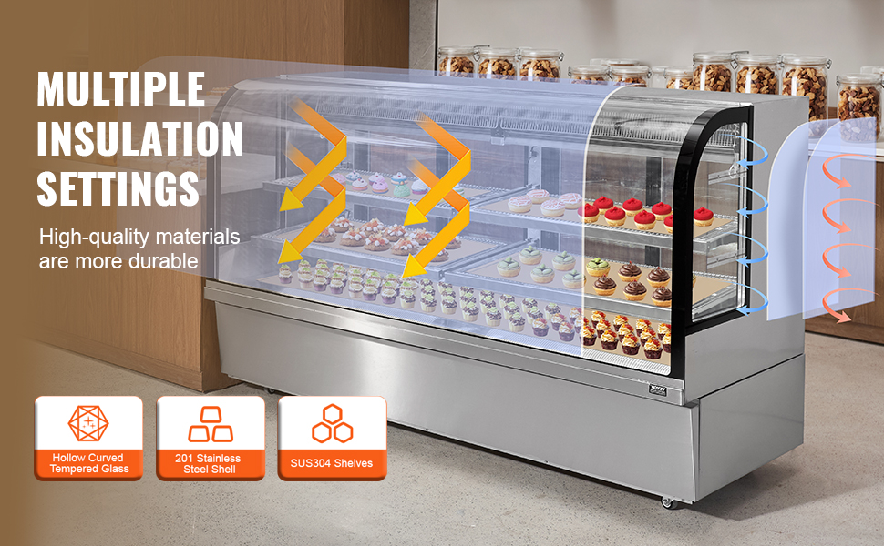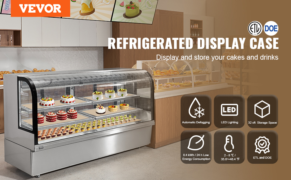 Táto zakrivená chladiaca vitrína je vybavená zapusteným systémom priameho chladenia, ktorý rýchlo ochladí potraviny na nastavenú teplotu. Vďaka funkcii automatického odhmlievania, LED osvetleniu a vysoko priehľadnému tvrdenému sklu krásne vystaví vaše potraviny, takže je ideálna pre vaše komerčné prostredie.
