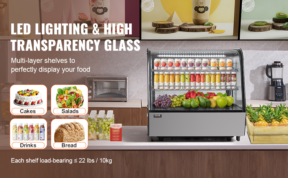 Dve nastaviteľné police umožňujú flexibilné umiestnenie položiek v rôznych výškach. LED osvetlenie a vysoko priehľadné tvrdené sklo zvyšujú atraktivitu potravín, čím zvyšujú pravdepodobnosť nákupu zákazníkmi.