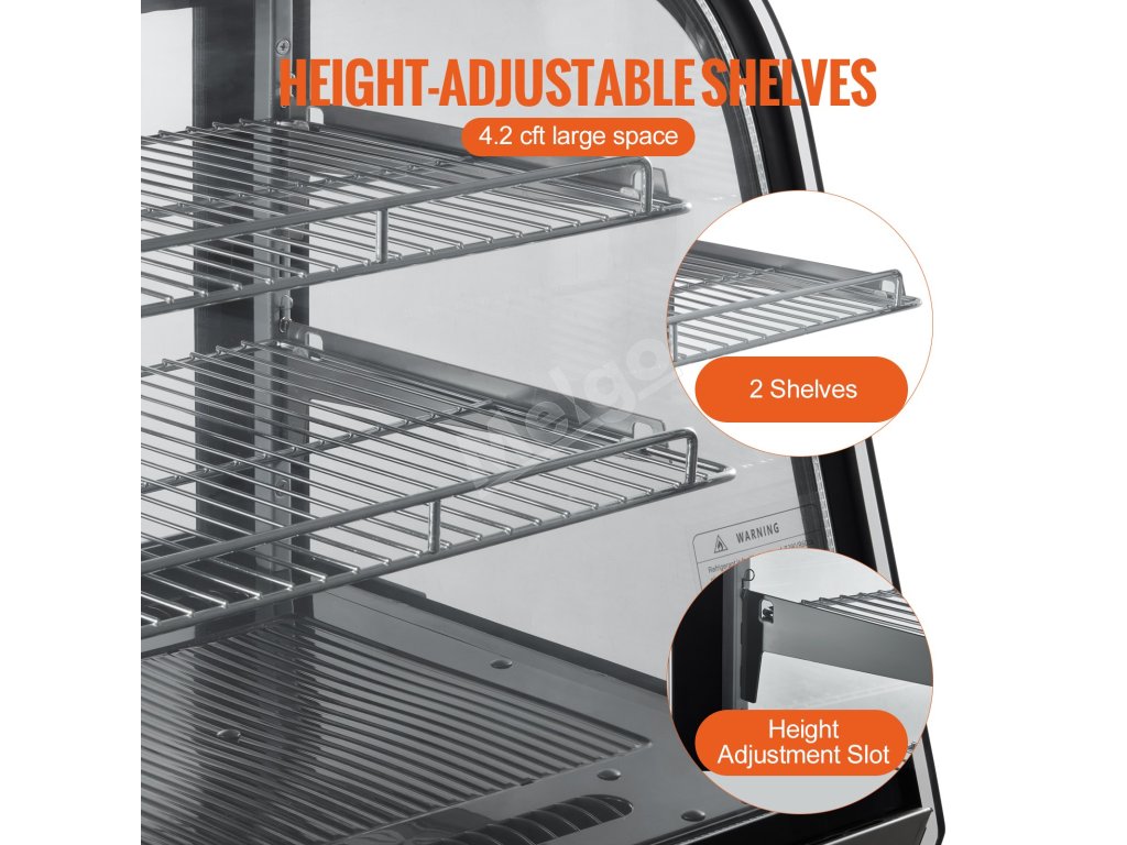 Dve nastaviteľné police umožňujú flexibilné umiestnenie položiek v rôznych výškach. LED osvetlenie a vysoko priehľadné tvrdené sklo zvyšujú atraktivitu potravín, čím zvyšujú pravdepodobnosť nákupu zákazníkmi.