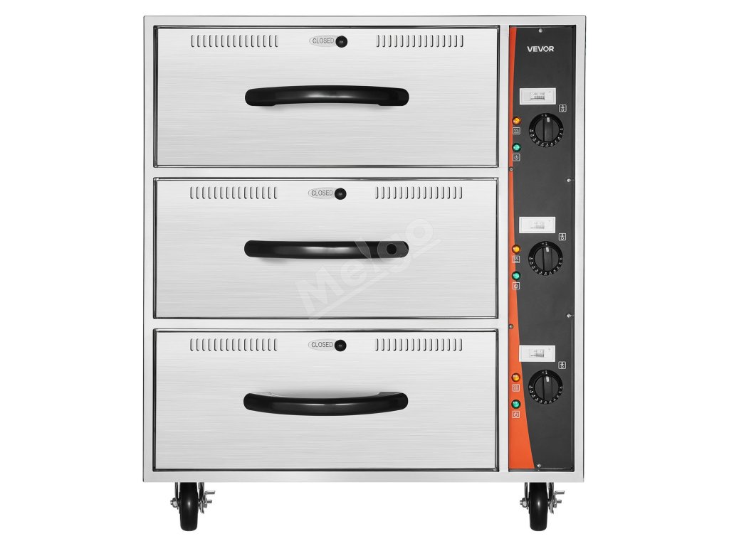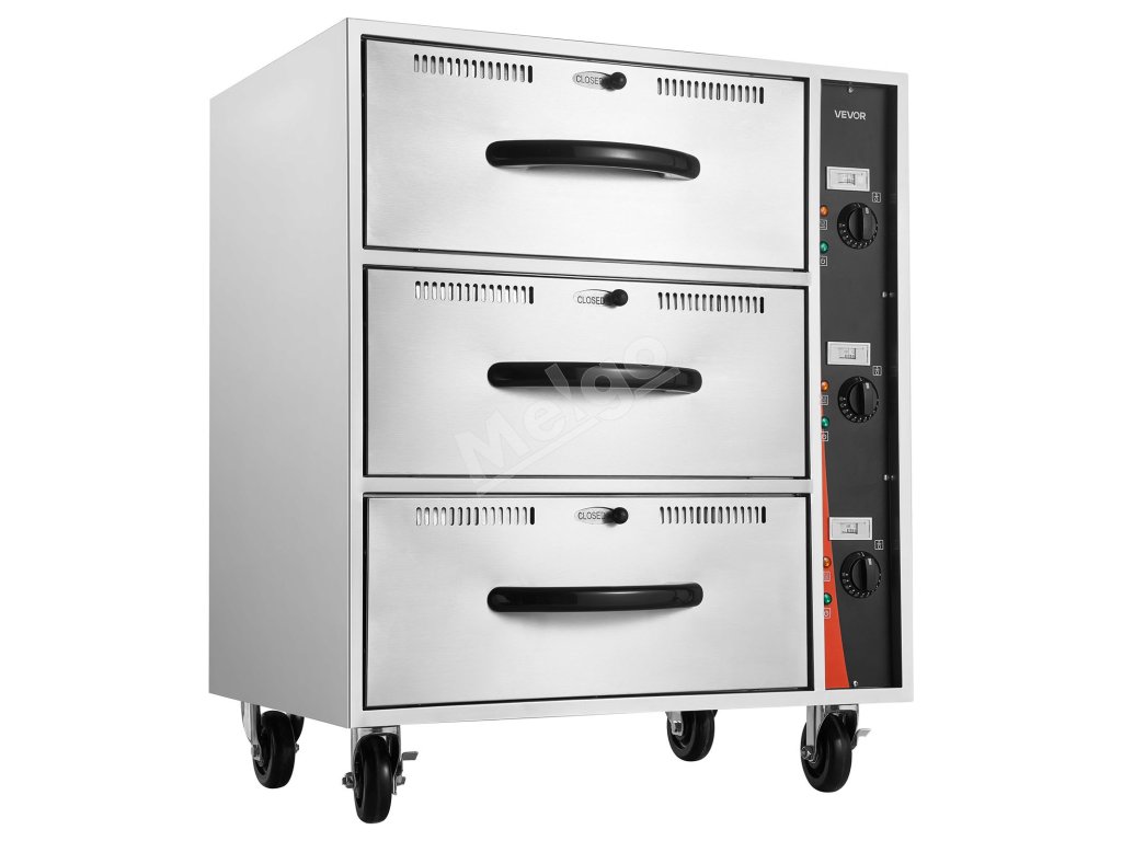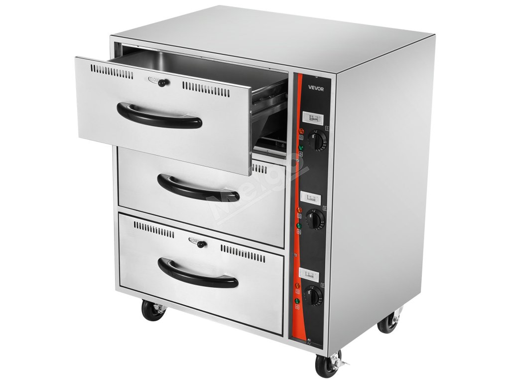 Elektrická zásuvková ohrievačka jedla 3 zásuvky, nerez, stojaca 30–85℃