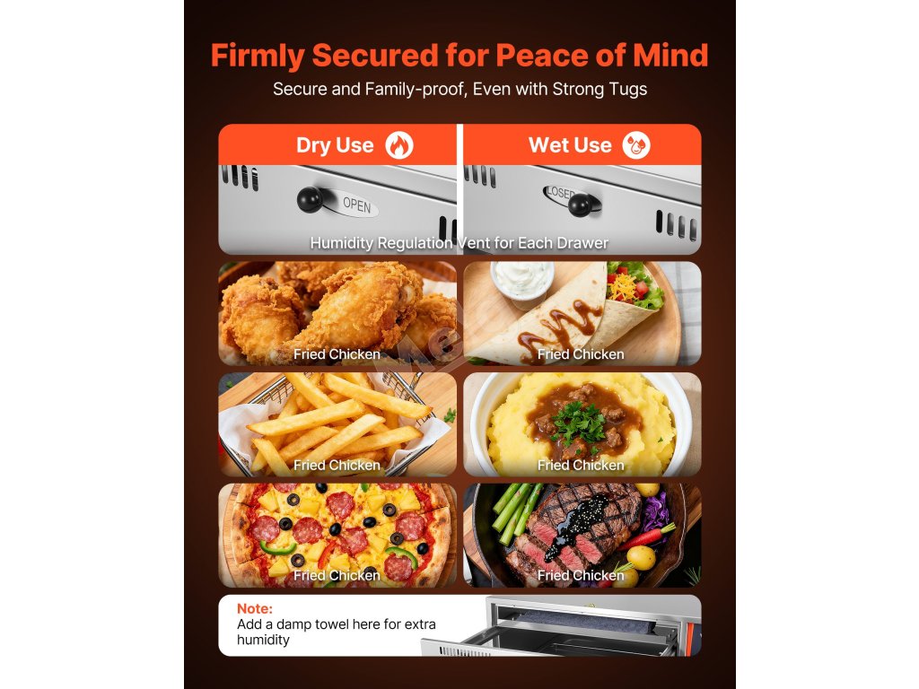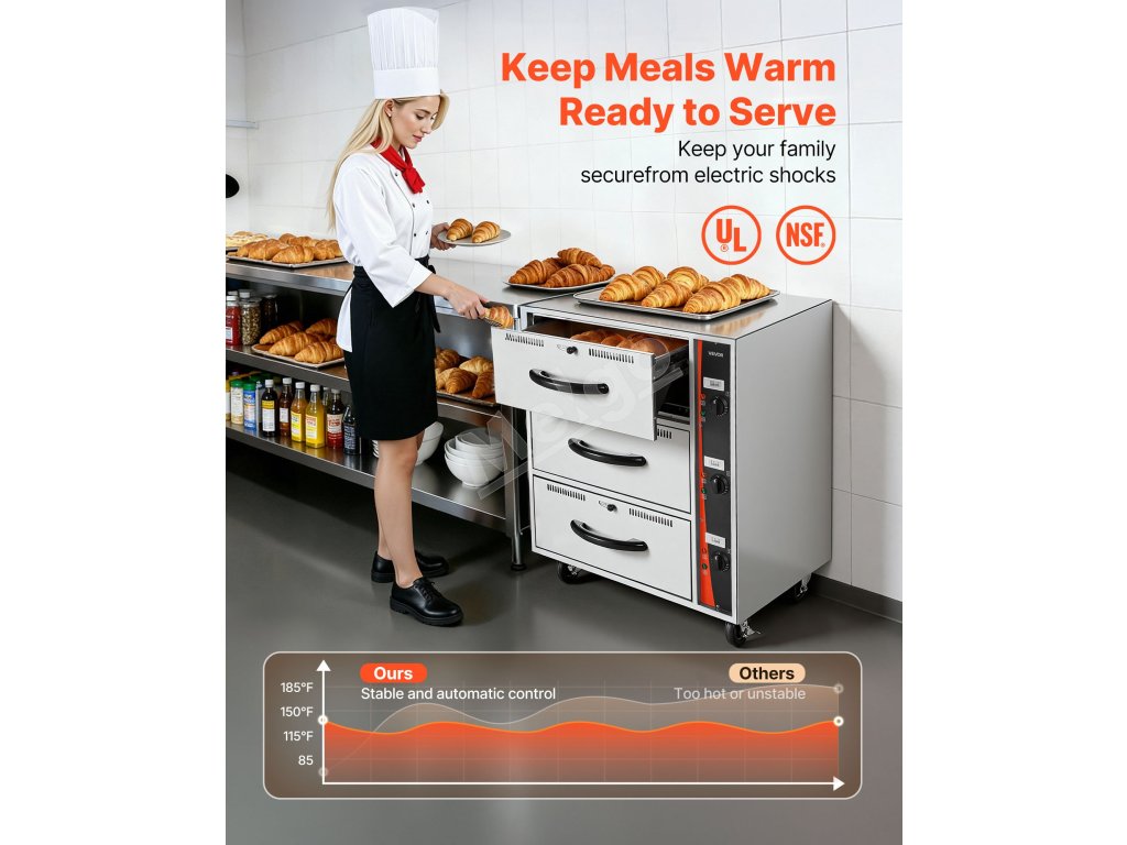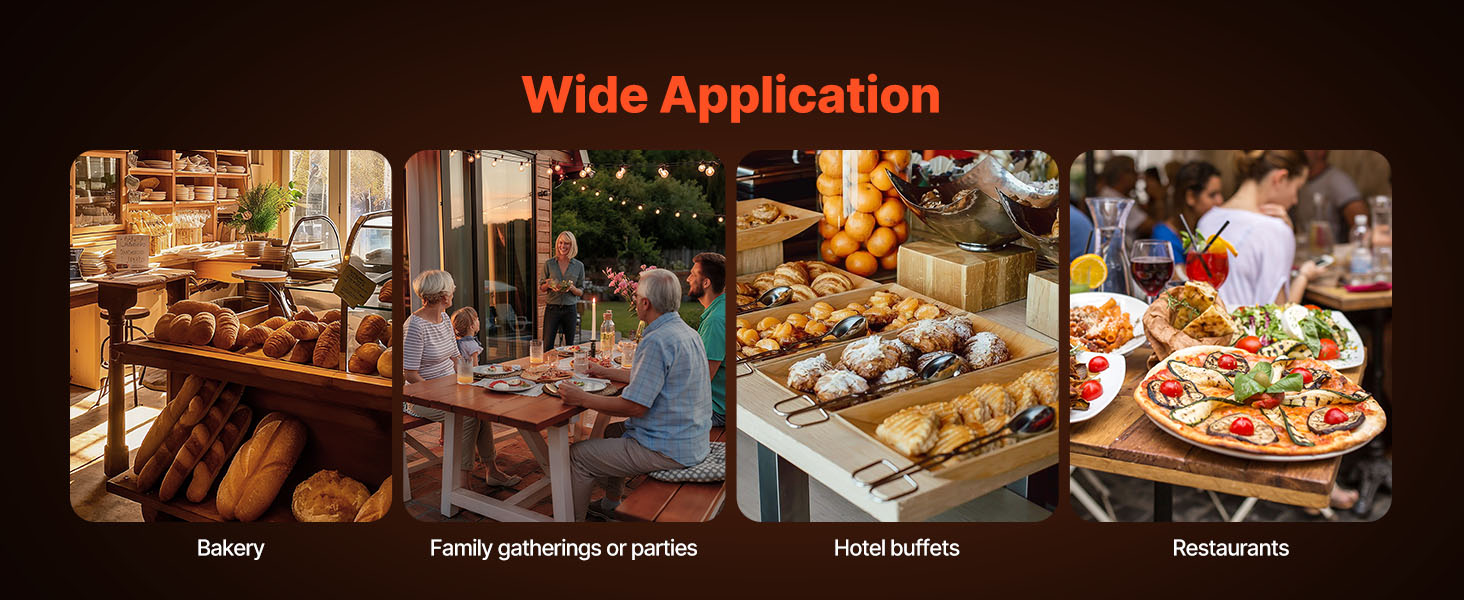 Táto ohrievacia zásuvka, ktorá je ideálna pre pekárne, komerčné kuchyne, domáce stretnutia, večierky a hotelové stravovacie služby, spĺňa rozmanité potreby ohrievania potravín vo viacerých scenároch.