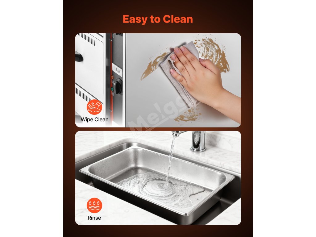 Táto komerčná elektrická ohrievacia zásuvka je vyrobená z odolnej nehrdzavejúcej ocele, je robustná a ľahko sa čistí. Jej vnútorný ohrievací systém udržiava potraviny pri ideálnej teplote, ideálna na chlieb, klobásy a prílohy. Jednoducho sa ovláda a je nevyhnutným nástrojom pre stravovacie služby.