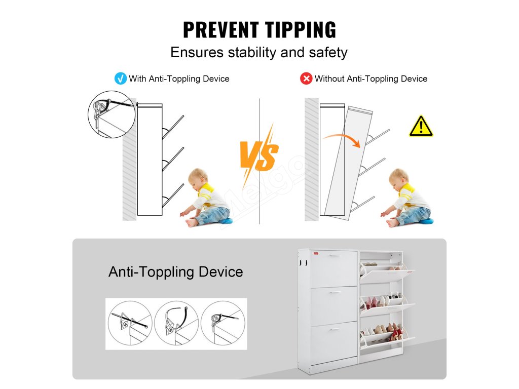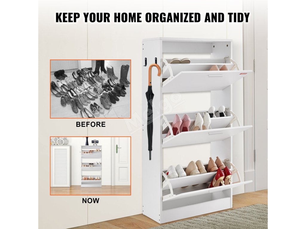 Vďaka viacvrstvovej konštrukcii vytvára skrinka na topánky do predsiene dokonalý manažment obuvi. Každý pár topánok má svoj vyhradený priestor, vďaka čomu je organizácia obuvi jednoduchá a môžete rýchlo nájsť požadovaný pár.