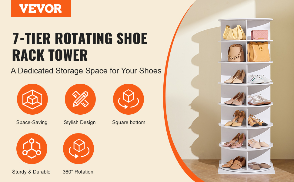 Tento otočný stojan na topánky vám pomôže udržať topánky v dokonalom poriadku, pretože sa otáča o 360° a umožňuje ľahký prístup ku každému páru. Vďaka viacúrovňovému dizajnu šetrí miesto a udržiava poriadok vo vašej domácnosti. Už nikdy nebudete mať problém nájsť svoje obľúbené topánky!