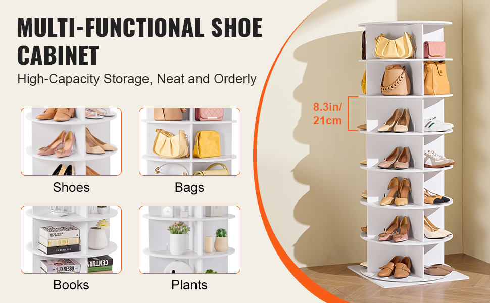 Náš rotujúci veža na topánky je viac ako len miesto na topánky. Je to všestranné úložné riešenie, ktoré sa zdvojnásobí ako držiak na tašky, knihy a dokonca aj na dekoratívne rastliny. Všetko má svoje miesto, takže si môžete užívať organizovanejší a štýlovejší obytný priestor.