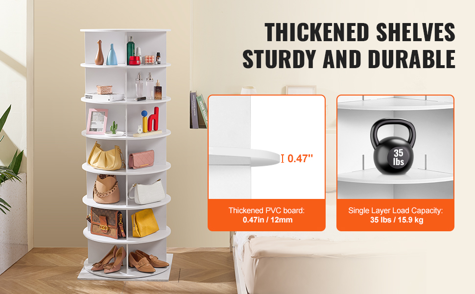 Tento otočný organizér na topánky so 4,7 palca / 12 mm hrubými policami je skonštruovaný tak, aby udržal až 35 libier / 15,9 kg na jednu policu. Či už ide o topánky alebo ťažké predmety, tento regál je navrhnutý tak, aby všetko bolo bezpečne uložené a ľahko dostupné.