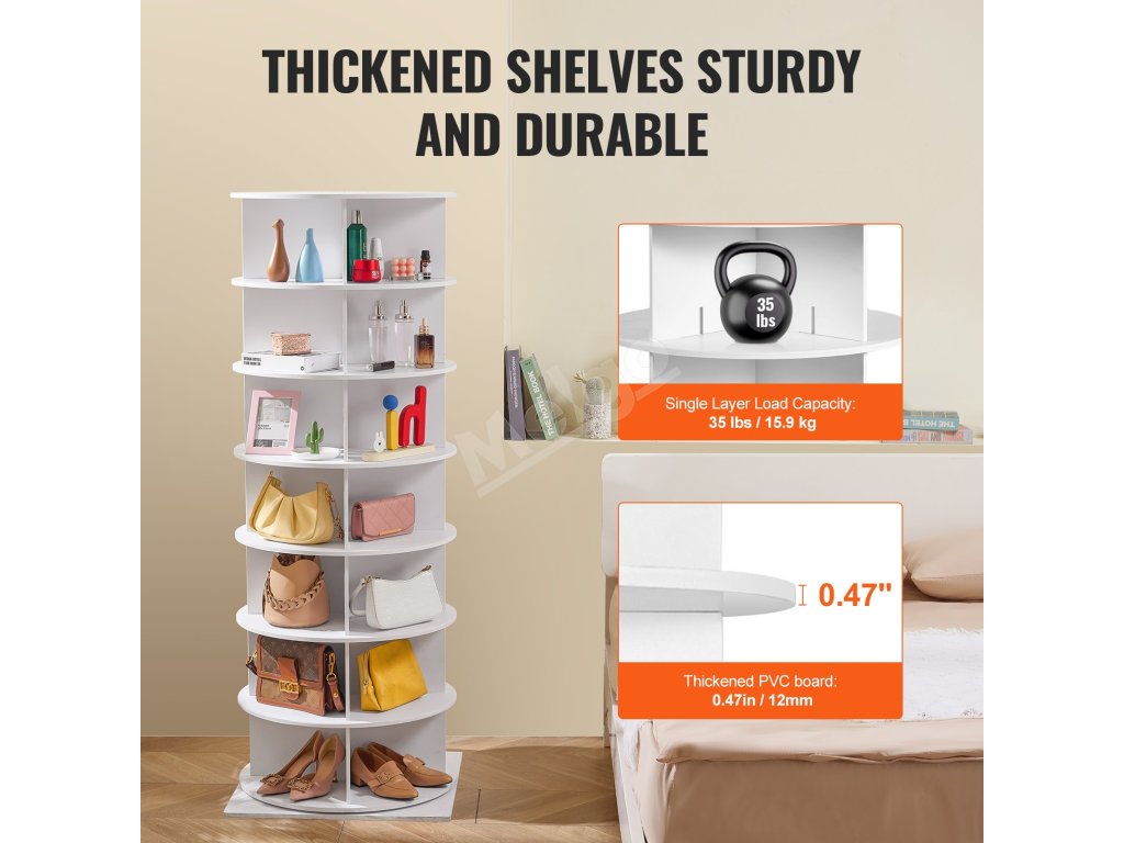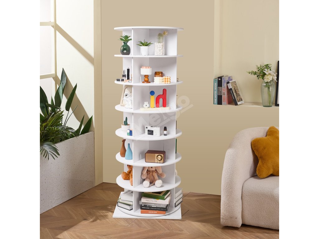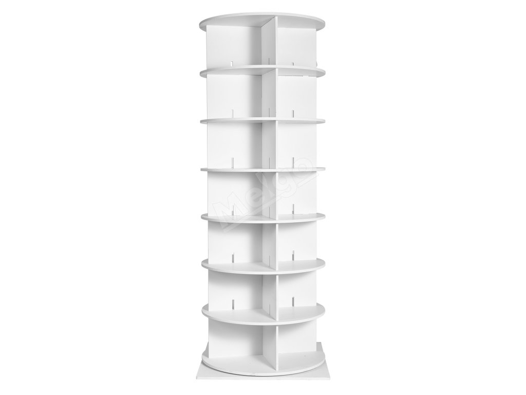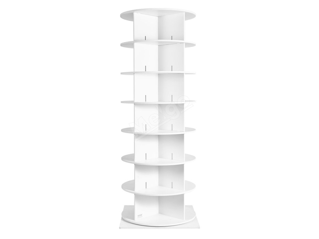 Otočný regál na topánky 7 úrovní, 360° otáčanie, biely s podstavcom