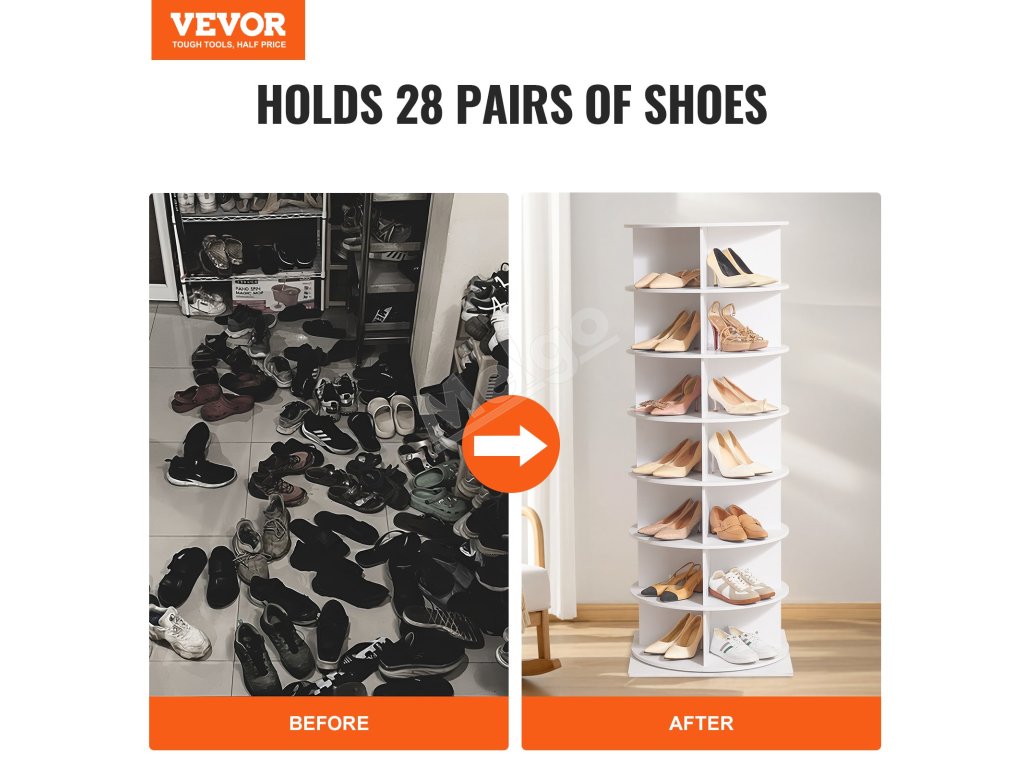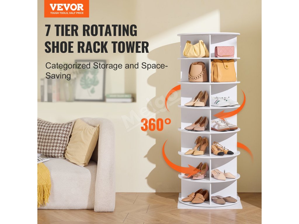 Tento otočný stojan na topánky vám pomôže udržať topánky v dokonalom poriadku, pretože sa otáča o 360° a umožňuje ľahký prístup ku každému páru. Vďaka viacúrovňovému dizajnu šetrí miesto a udržiava poriadok vo vašej domácnosti. Už nikdy nebudete mať problém nájsť svoje obľúbené topánky!