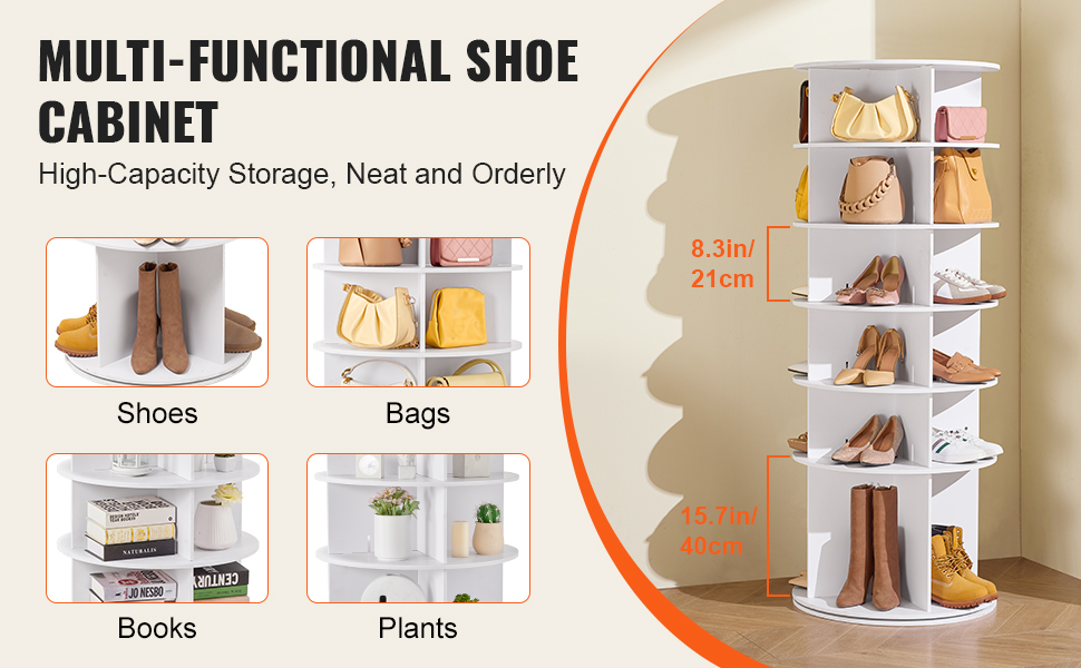 Náš rotujúci veža na topánky je viac ako len miesto na topánky. Je to všestranné úložné riešenie, ktoré sa zdvojnásobí ako držiak na tašky, knihy a dokonca aj na dekoratívne rastliny. Všetko má svoje miesto, takže si môžete užívať organizovanejší a štýlovejší obytný priestor.