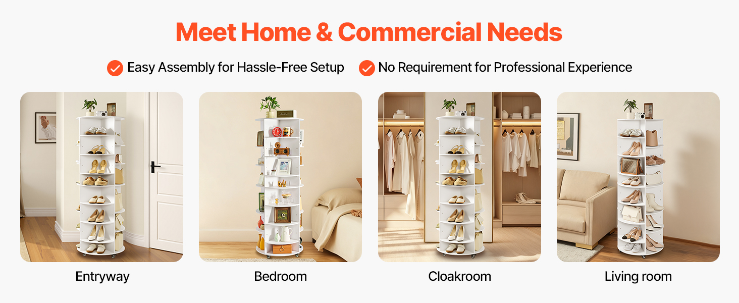 Vďaka minimalistickému vzhľadu a 2 klasickým farebným variantom sa otočná veža na topánky hodí do domácich predsiení, šatníkov, rohov spální, ako aj do priestorov obchodov s obuvou a výstavných zón obchodných centier - kombinuje úložný priestor a dekoráciu. Vrátane ilustrovaného návodu a kompletného príslušenstva sa ľahko inštaluje.