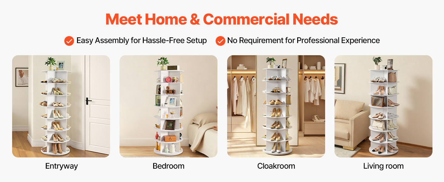 Vďaka minimalistickému vzhľadu a 2 klasickým farebným variantom sa otočná veža na topánky hodí do domácich predsiení, šatníkov, rohov spální, ako aj do priestorov obchodov s obuvou a výstavných zón obchodných centier - kombinuje úložný priestor a dekoráciu. Vrátane ilustrovaného návodu a kompletného príslušenstva sa ľahko inštaluje.
