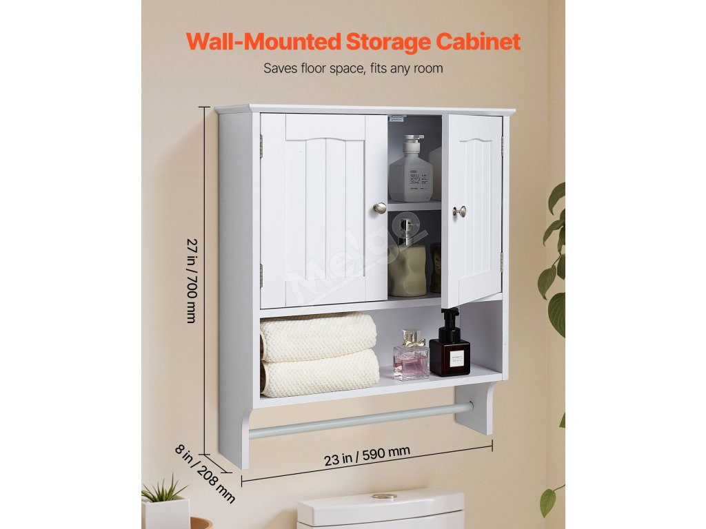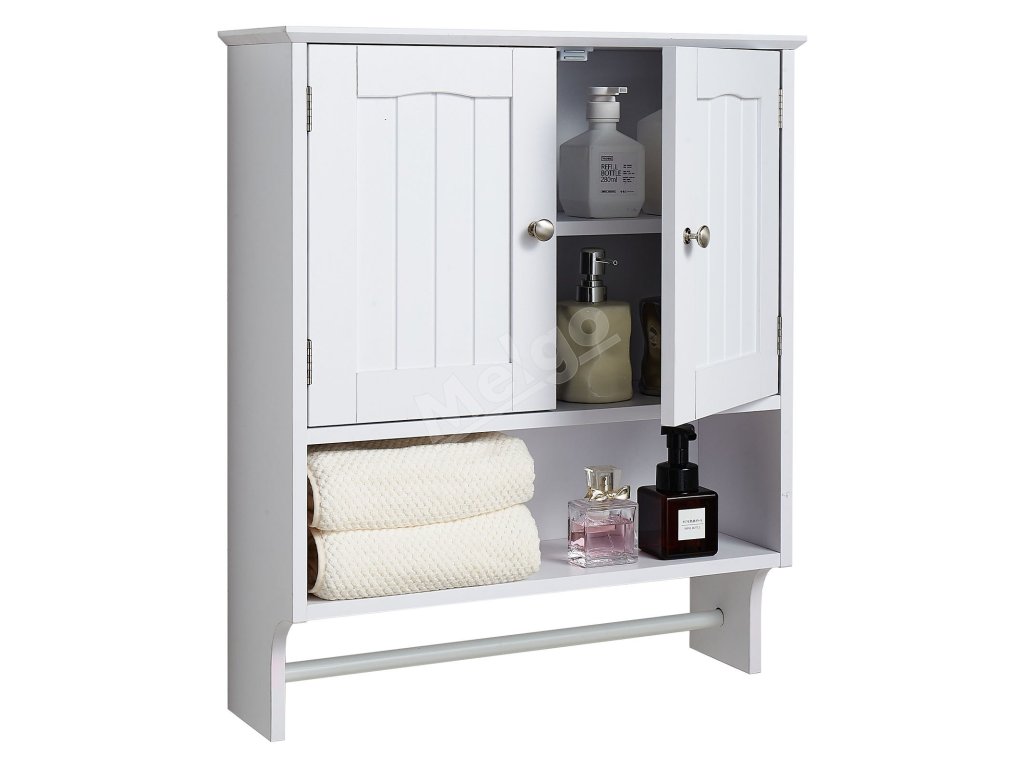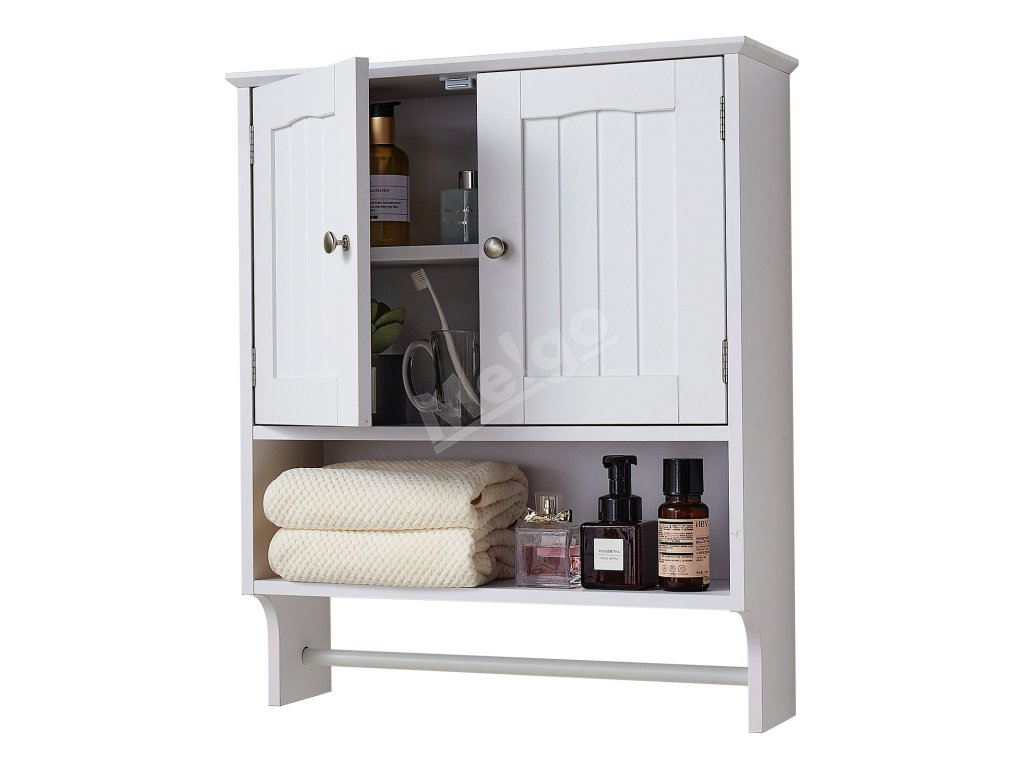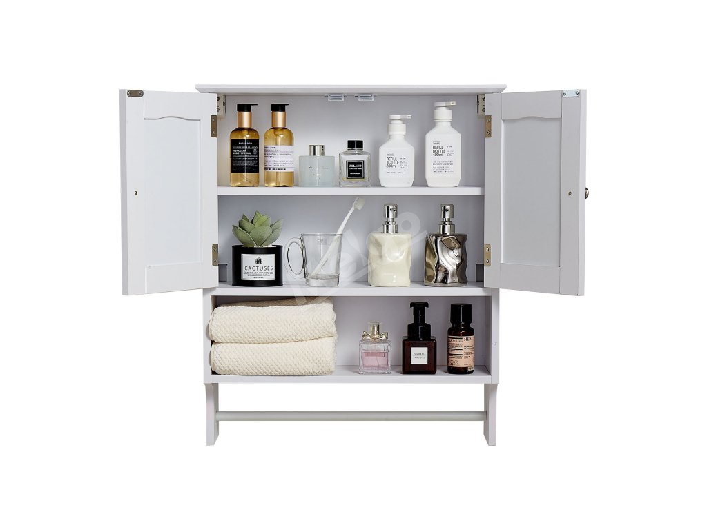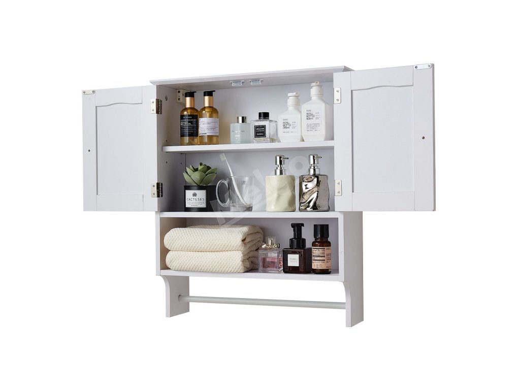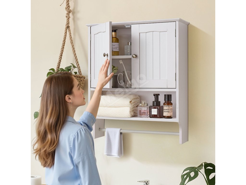 Kúpeľňová nástenná skrinka 2 dvere, nastaviteľná polica, nad wc, biela