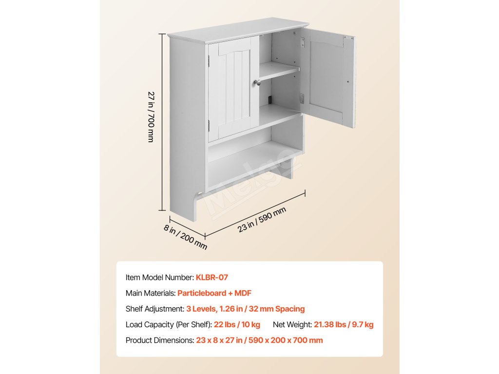Táto nástenná skrinka do kúpeľne je vyrobená z prvotriednej drevotriesky, je robustná, odolná a atraktívna. Jej priestranný interiér s 3-úrovňovou nastaviteľnou policou maximalizuje vertikálny úložný priestor. Naša kúpeľňová nástenná skrinka spĺňa potreby na uskladnenie rôznych toaletných potrieb a rôznych predmetov.