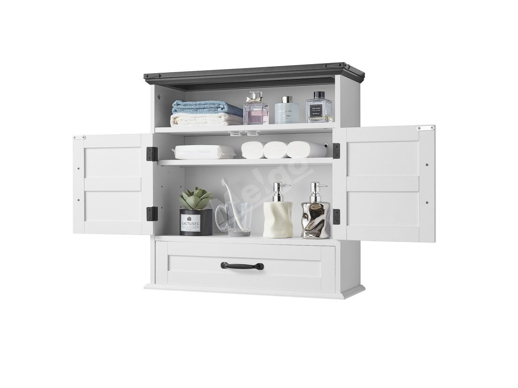 Uzavretá konštrukcia skrinky a zásuvky poskytuje skryté a bezpečné uloženie predmetov. Nastaviteľná polica závesnej kúpeľňovej skrinky sa dokáže flexibilne prispôsobiť rôznym typom predmetov a otvorená polica je prehľadná a krásna na prístup k predmetom dennej potreby. Je robustná a odolná.
