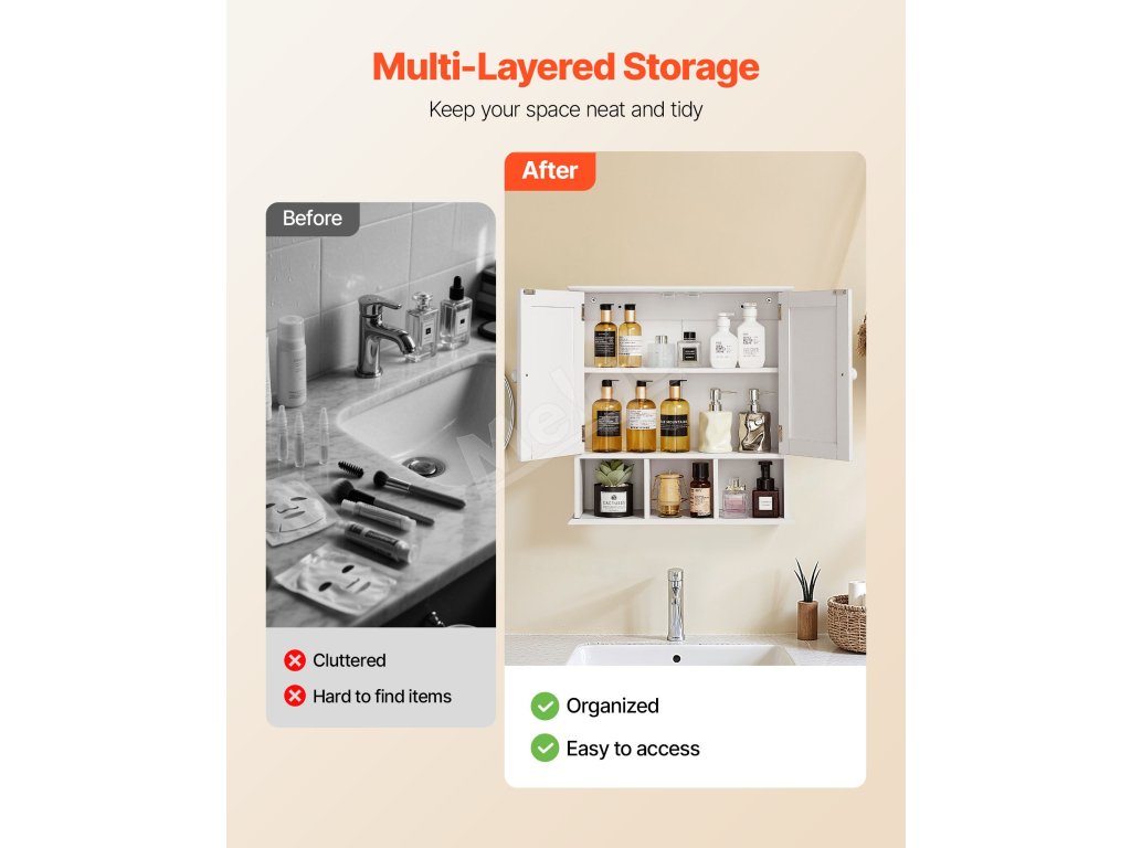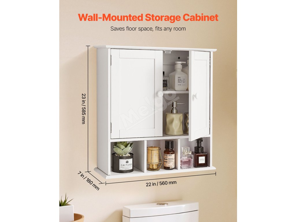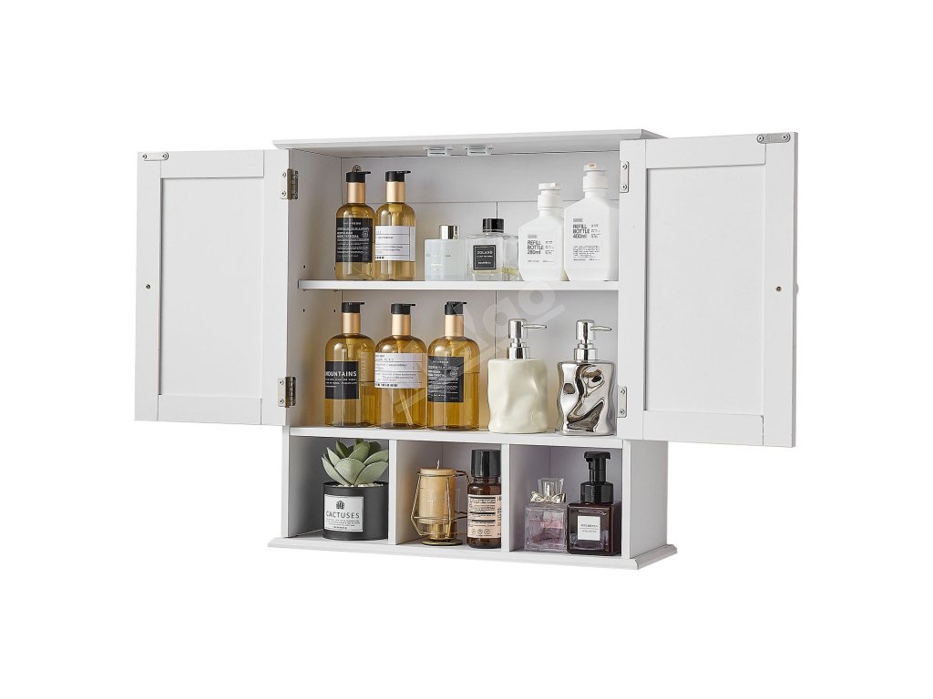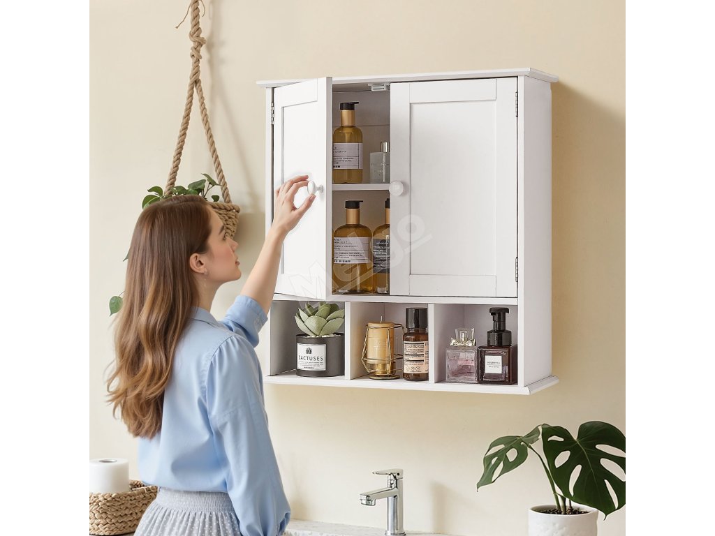 Táto multifunkčná kúpeľňová nástenná skrinka sa bez problémov začlení do kúpeľní, kuchýň, spální, obývacích izieb, chodieb a iných obytných priestorov. Flexibilne sa prispôsobí na ukladanie toaletných potrieb, kuchynských šanónov, organizovanie neporiadku v spálni alebo zdobenie stien obývacej izby.