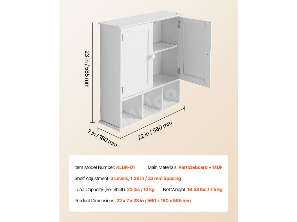 Táto nástenná skrinka do kúpeľne je vyrobená z prvotriednej drevotriesky, je robustná, odolná a atraktívna. Jej priestranný interiér s 3-úrovňovou nastaviteľnou policou maximalizuje vertikálny úložný priestor. Naša kúpeľňová nástenná skrinka spĺňa potreby na uskladnenie rôznych toaletných potrieb a rôznych predmetov.