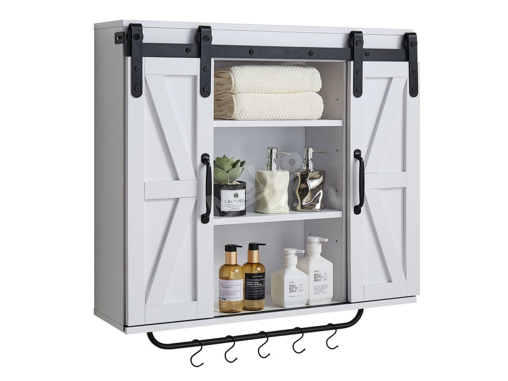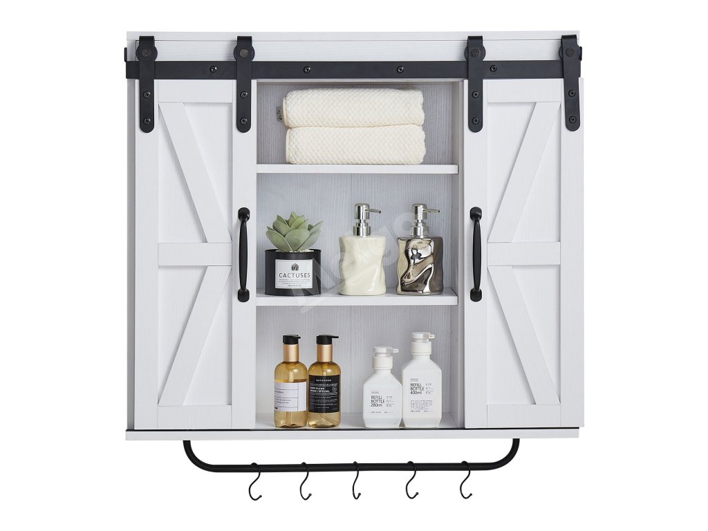 Nástenná skrinka nad wc, 2 dvere, nastaviteľná polica, háčiky, biela