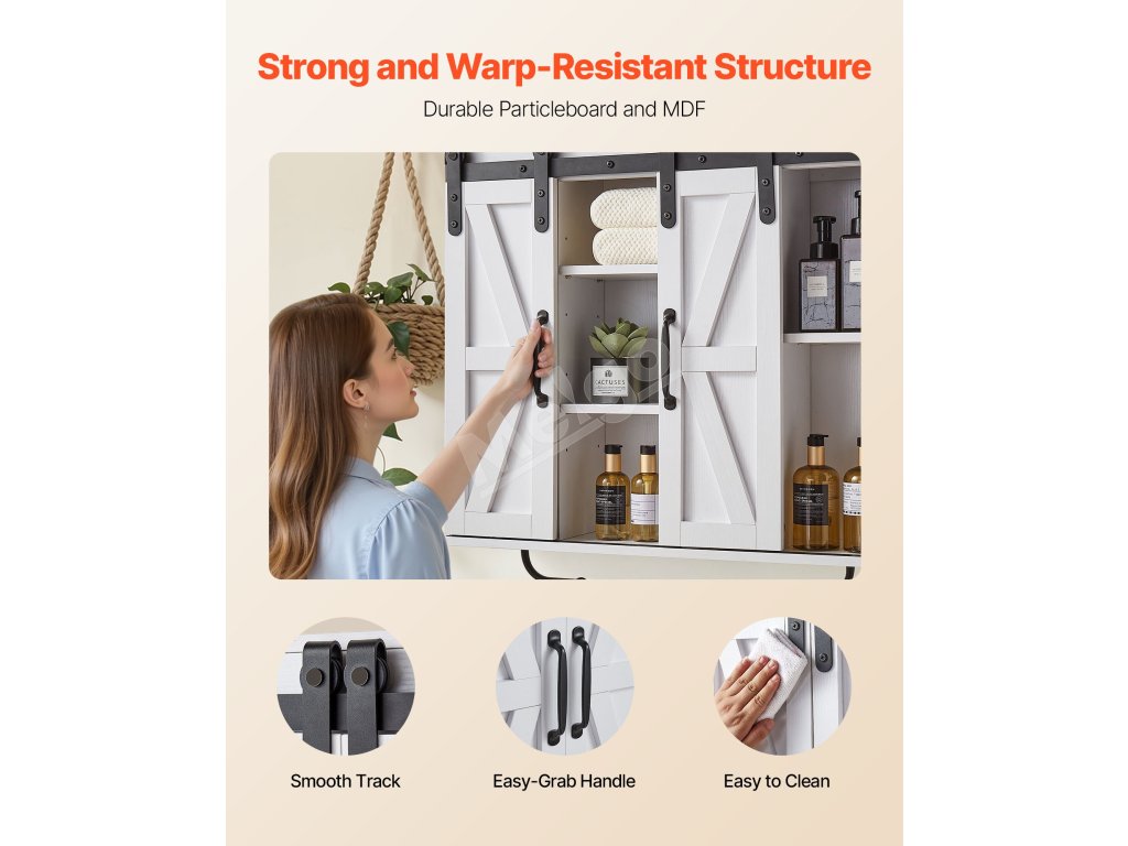 Táto multifunkčná kúpeľňová nástenná skrinka sa bez problémov začlení do kúpeľní, kuchýň, spální, obývacích izieb, chodieb a iných obytných priestorov. Flexibilne sa prispôsobí na ukladanie toaletných potrieb, kuchynských šanónov, organizovanie neporiadku v spálni alebo zdobenie stien obývacej izby.